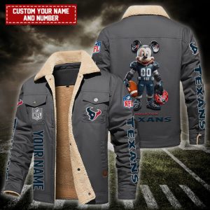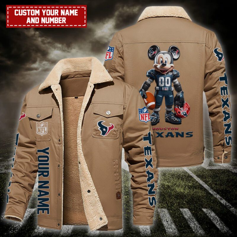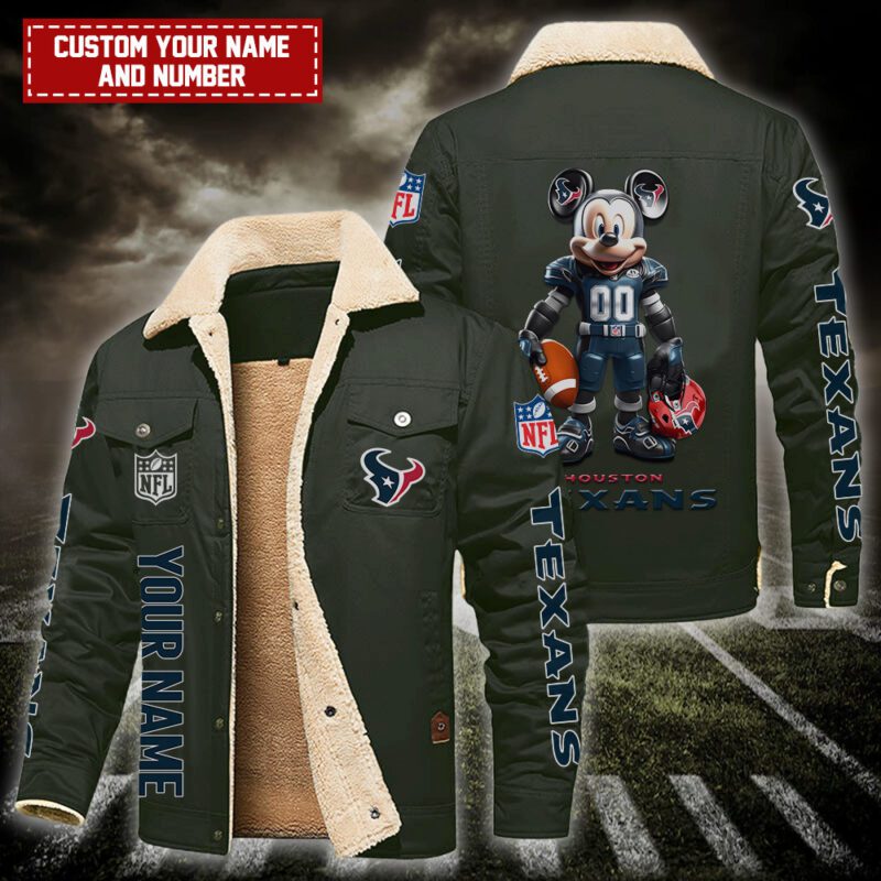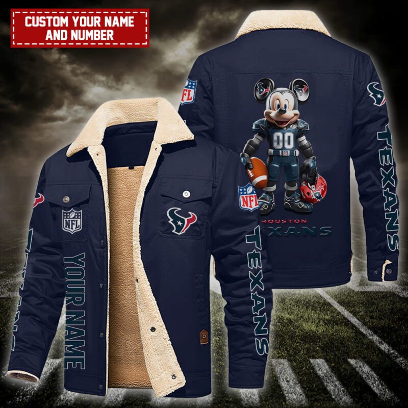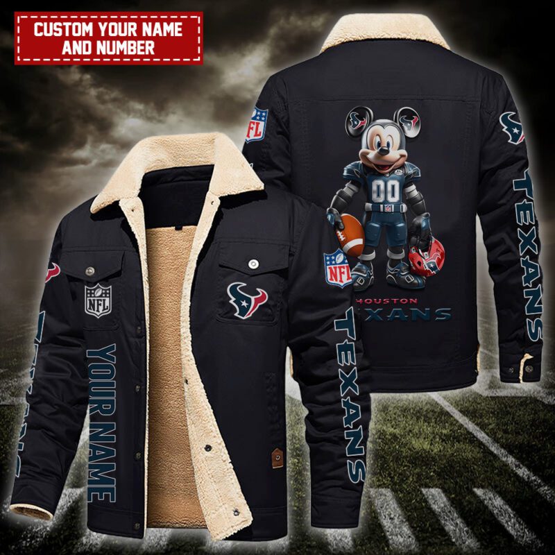 Houston Texans NFL Mickey Style Personalized Fleece Cargo Jacket Winter Jacket FCJ1395