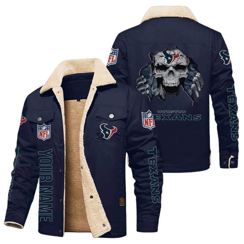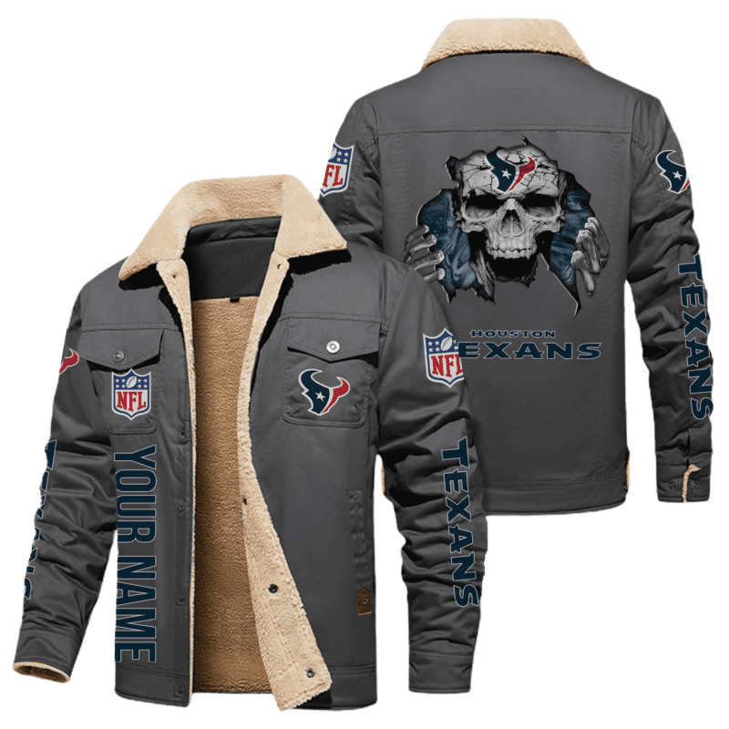 Houston Texans NFL Skull Style Personalized Fleece Cargo Jacket Winter Jacket FCJ1459