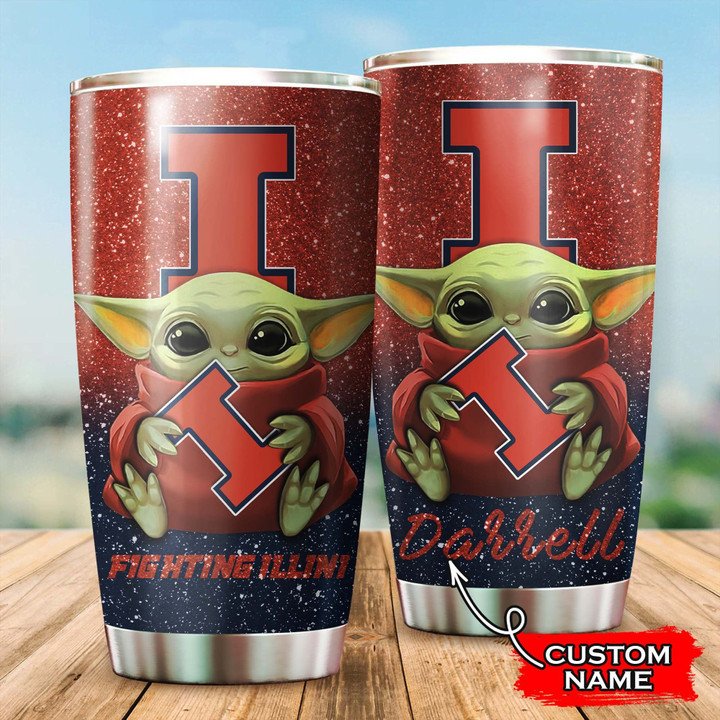 Illinois Fighting Illini Baby Yoda Custom Name Tumbler TB0875