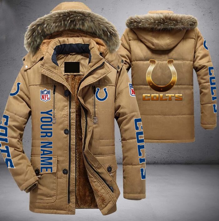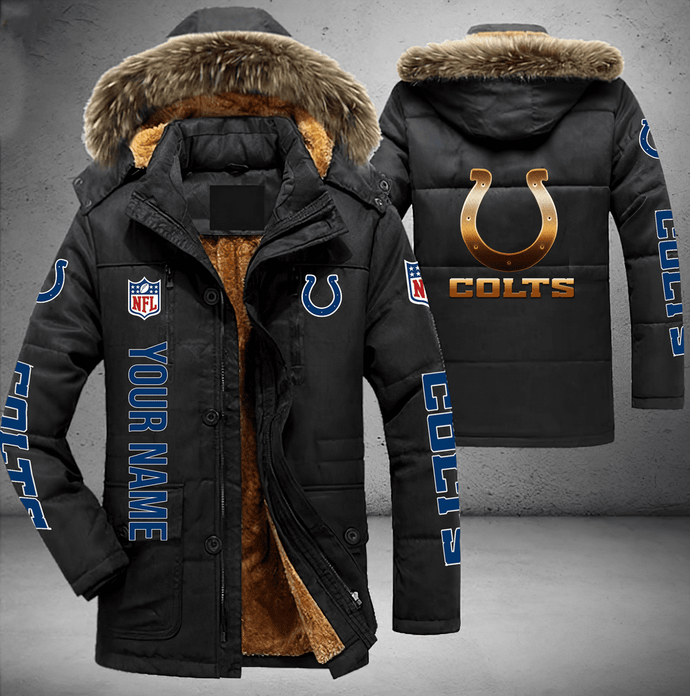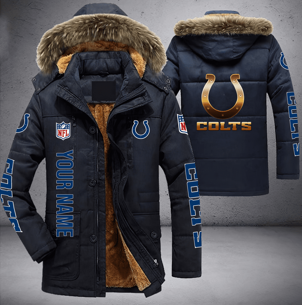 Indianapolis Colts NFL Personalized Golden Logo Parka Jacket Fleece Coat Winter