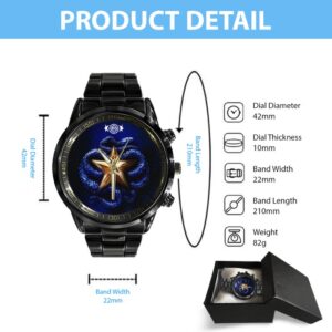 Refined Elegance: Elevate your style with our Black Stainless Steel Watch. Crafted for durability and sophistication, it seamlessly blends modern aesthetics with timeless charm. Whether it’s a formal occasion or casual outing, this versatile accessory adds a touch of refinement to any ensemble. With precision timekeeping and comfortable wear, it’s the perfect gift choice for yourself or a loved one, promising enduring style and quality craftsmanship.