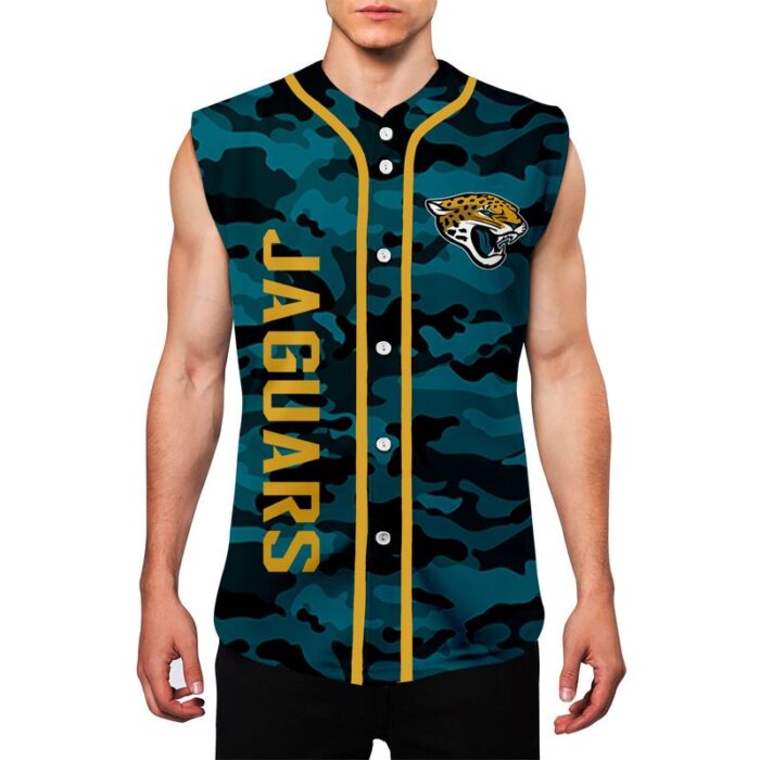 Jacksonville Jaguars Camo Sleeveless Baseball Jersey Tank Top Custom Name BBTJ1079