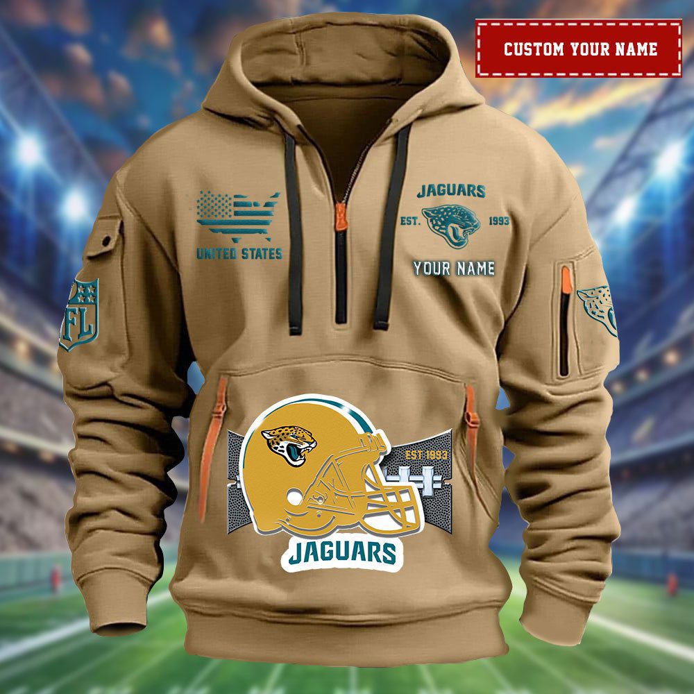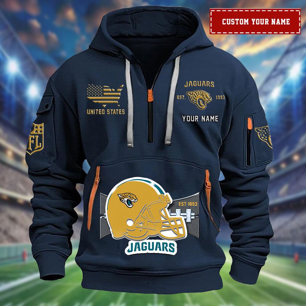 Jacksonville Jaguars Personalized Big Logo NFL Quarter Zip Hoodie For Fans WQH5076