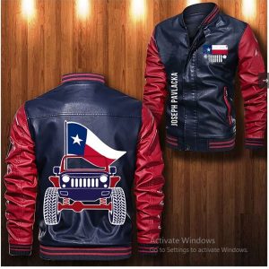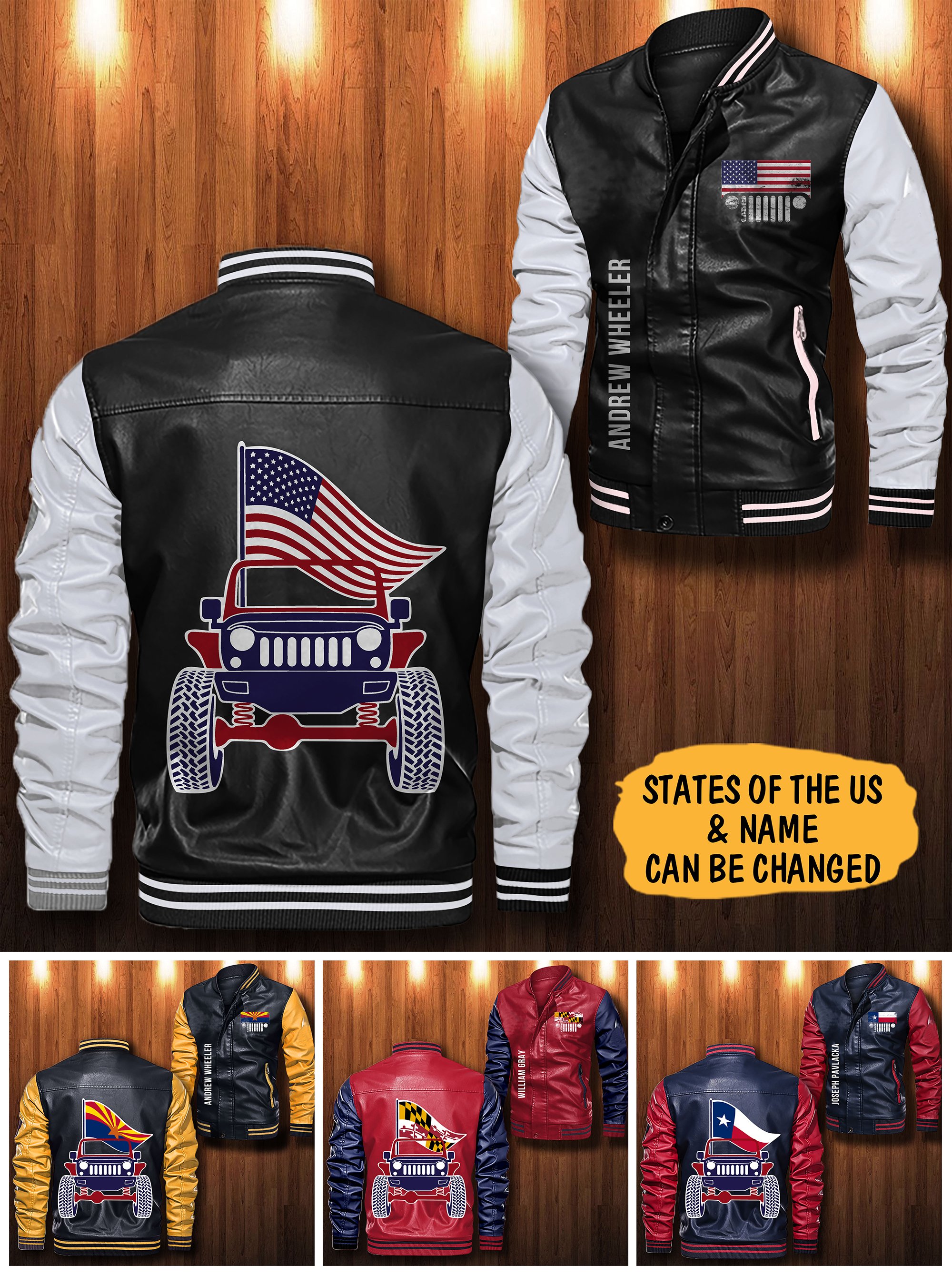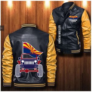 - This leather bomber jacket with high collar, full-zip front, and side seam pockets works as a finishing touch to a stylish cool-weather look