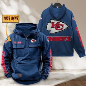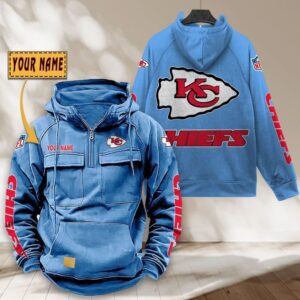 Kansas City Chiefs NFL Personalized Multi Pocket Quarter Zip Vintage Hoodie WVH1047