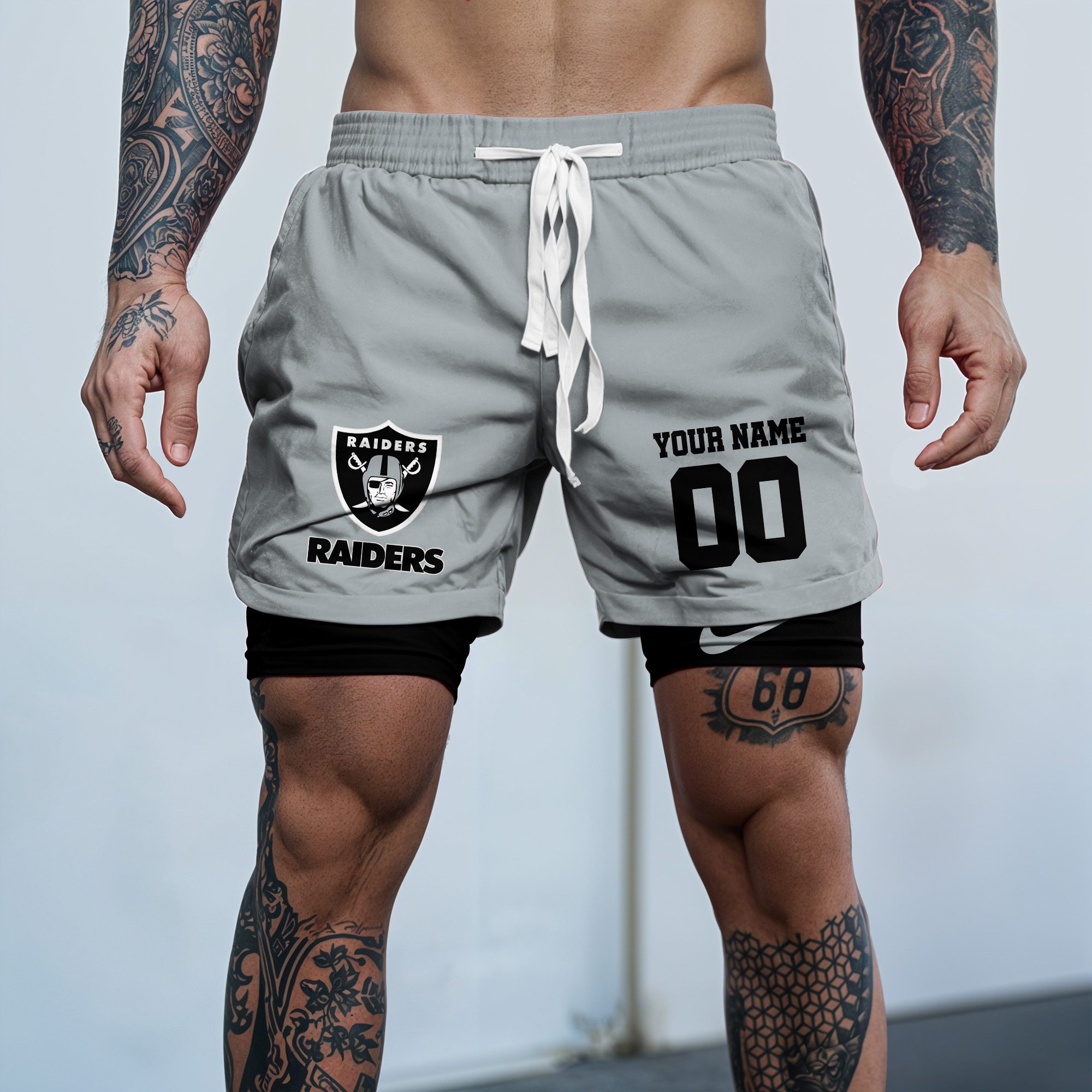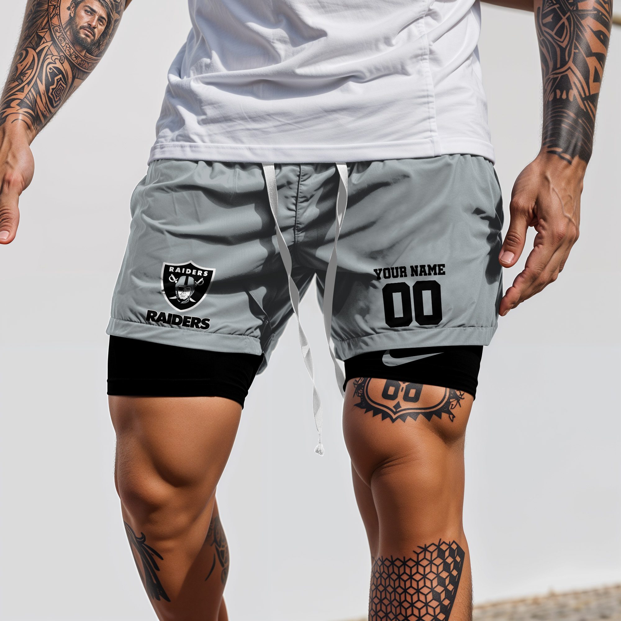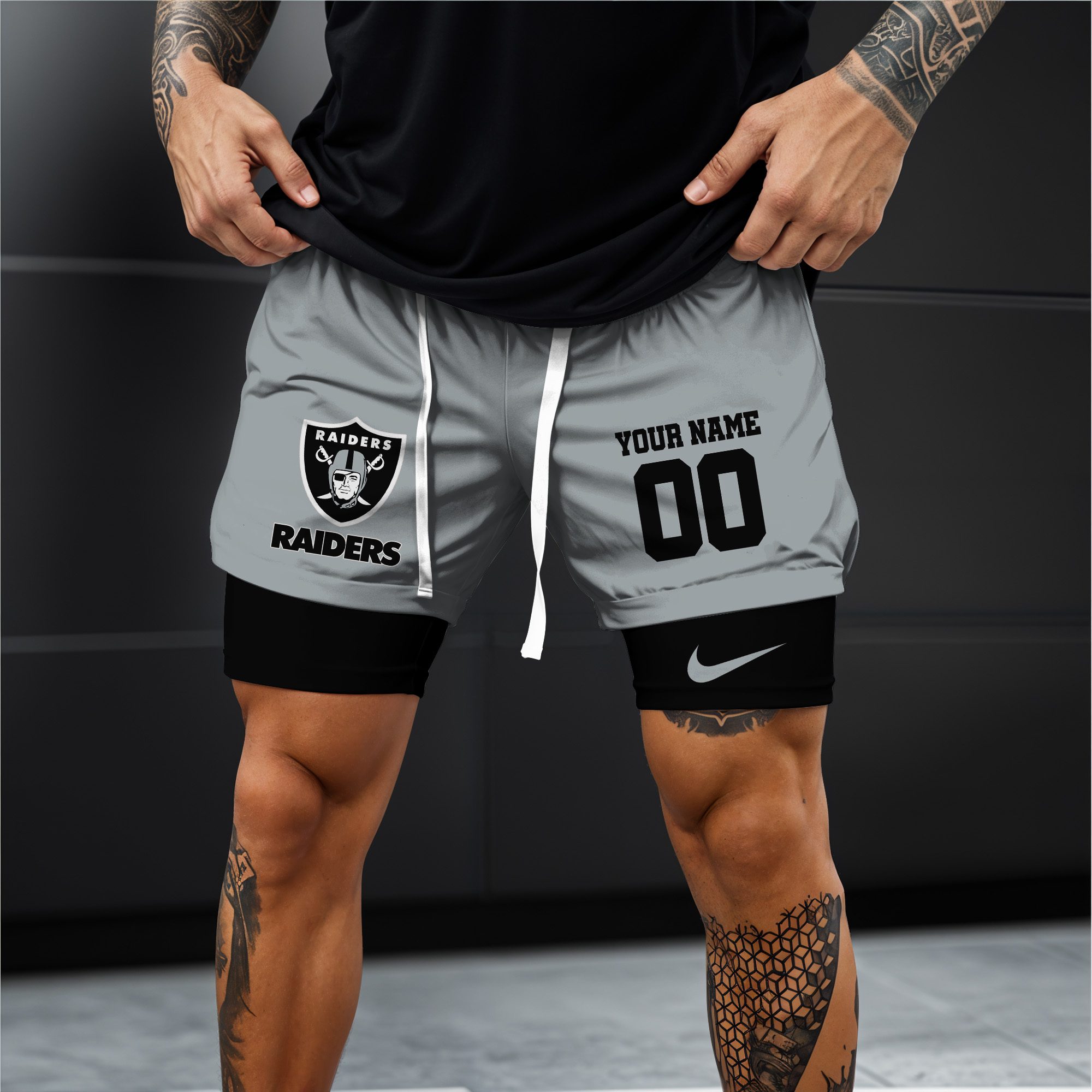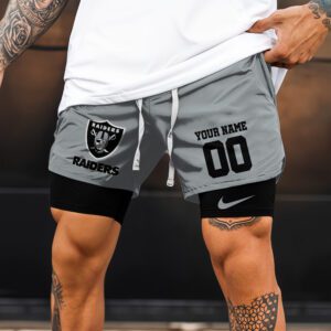 Las Vegas Raiders NFL Double Layer Shorts Custom Your Name And Number WDS1049