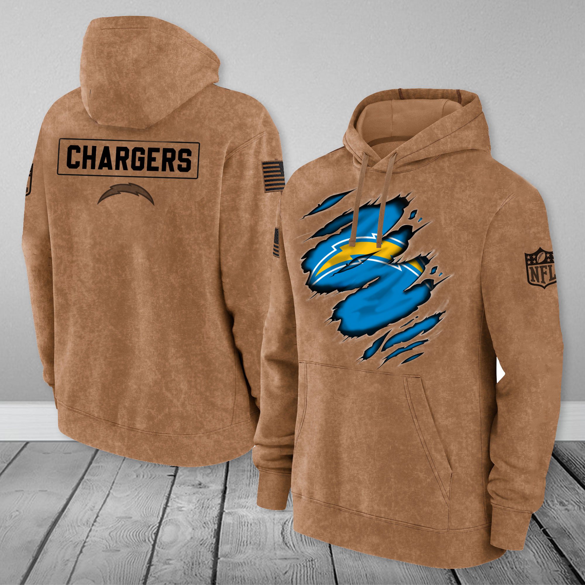 Los Angeles Chargers NFL Brown Distressed Logo Salute To Service 2023 3D Hoodie HSL1050