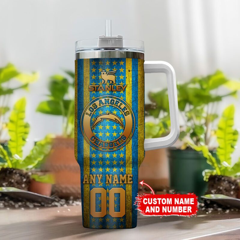 Los Angeles Chargers NFL Golden Logos Us Flag Personalized 40oz Stanley Tumbler STT3148