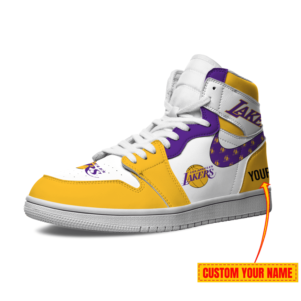 Los Angeles Lakers Personalized NBA AJ1 Nike Sneakers High Top