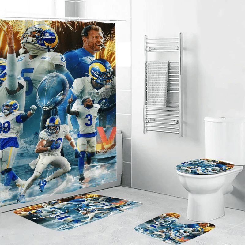 Los Angeles Rams All Players5 Waterproof Shower Curtain Non-Slip Toilet Lid Cover Bath Mat Bathroom Set BRS2539