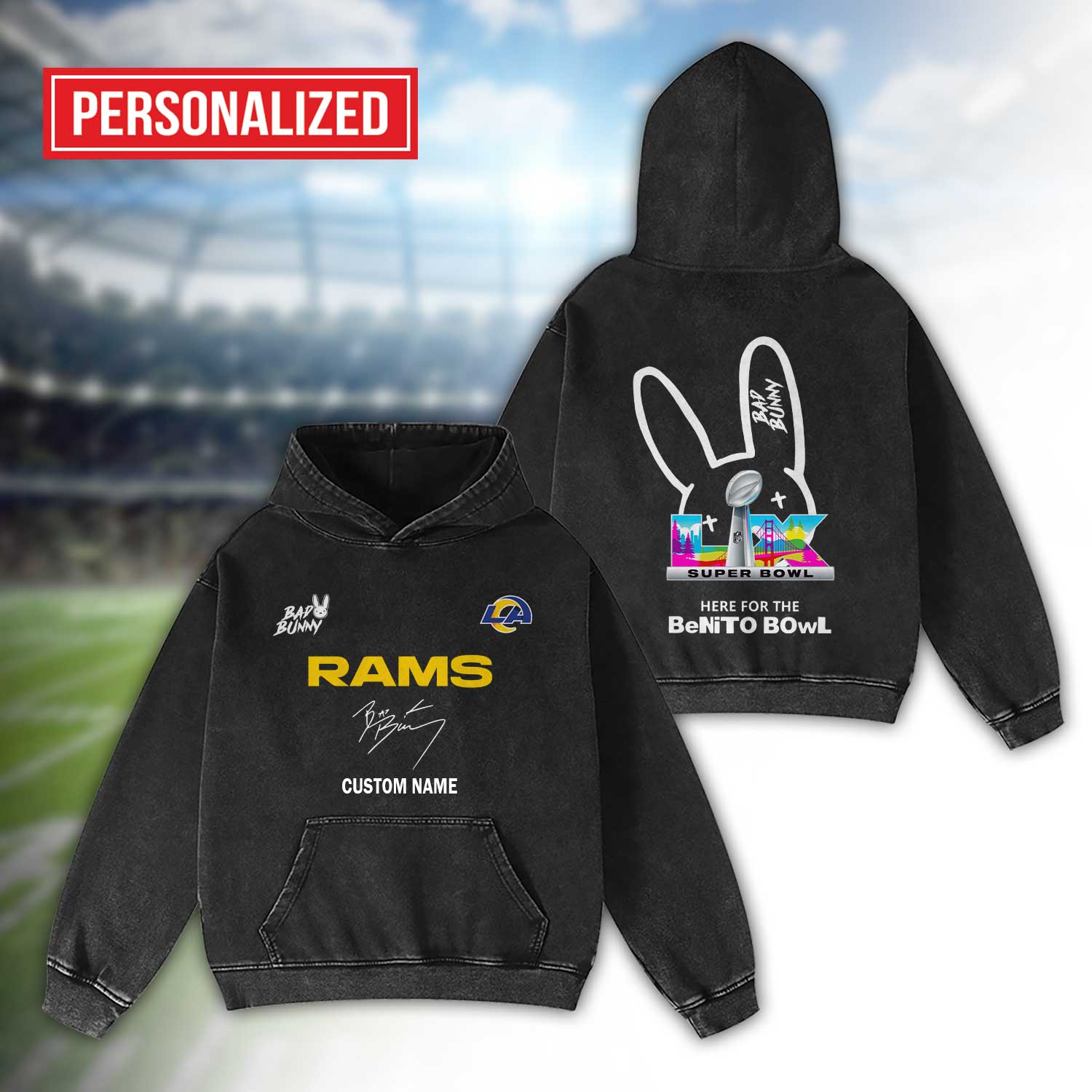 Los Angeles Rams Bad Bunny Super Bowl LX 2026 2D Washed Hoodie