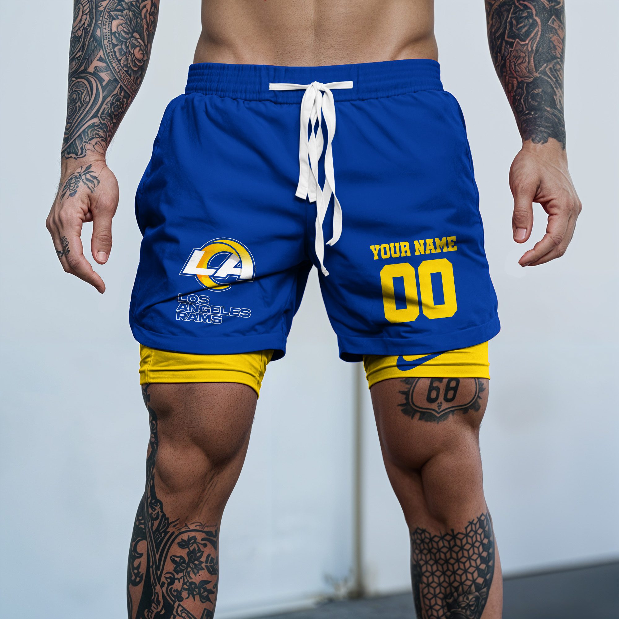 Los Angeles Rams NFL Double Layer Shorts Custom Your Name And Number WDS1048