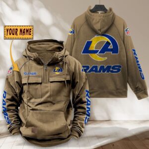 Los Angeles Rams NFL Personalized Multi Pocket Quarter Zip Vintage Hoodie WVH1049