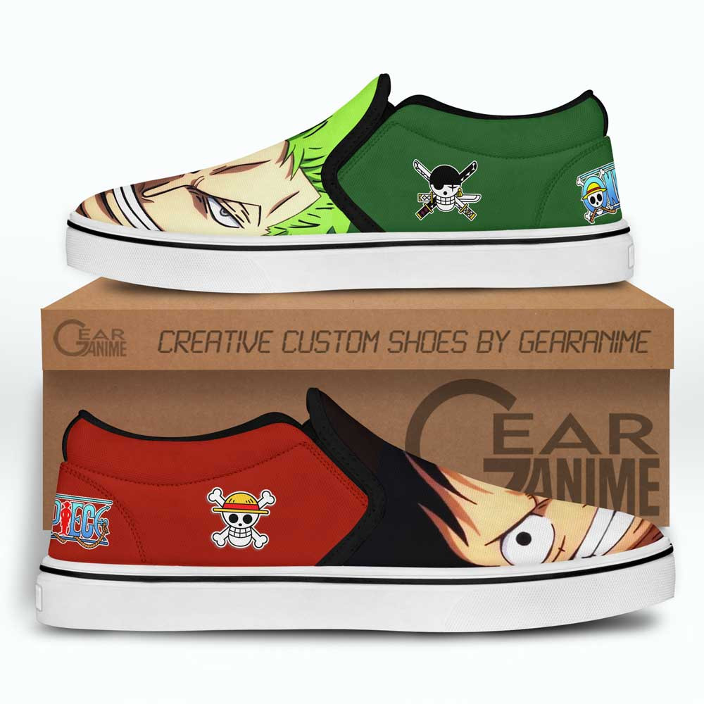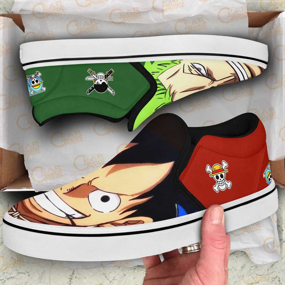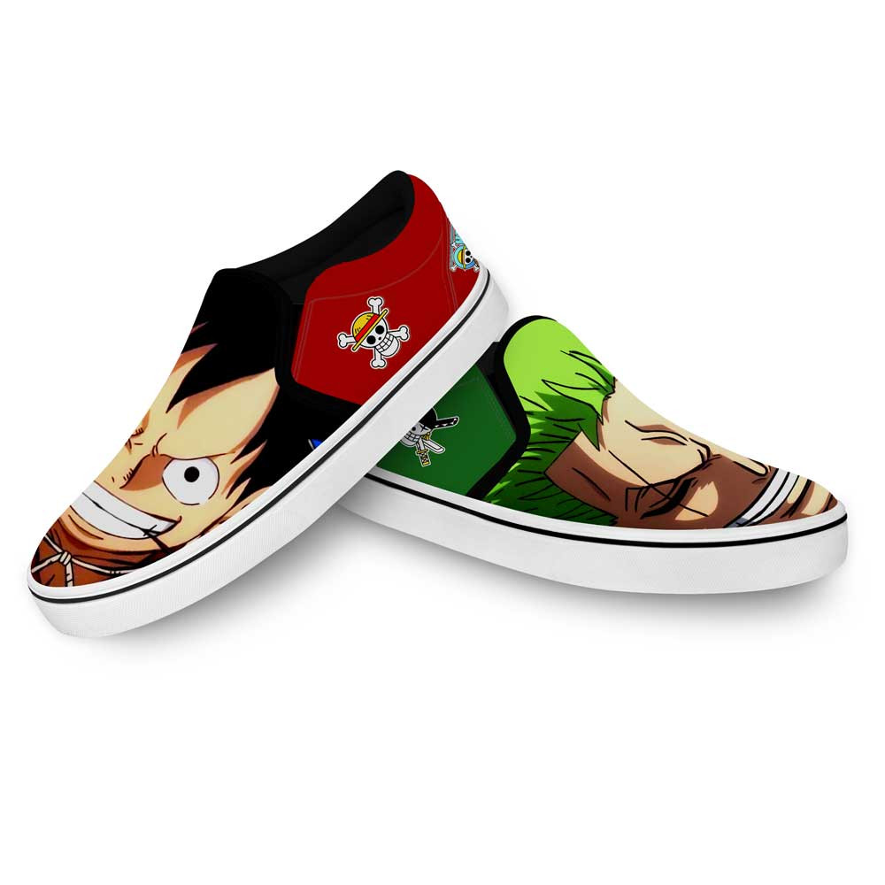 Luffy and Zoro Slip On Shoes Custom Wano One Piece Anime Shoes