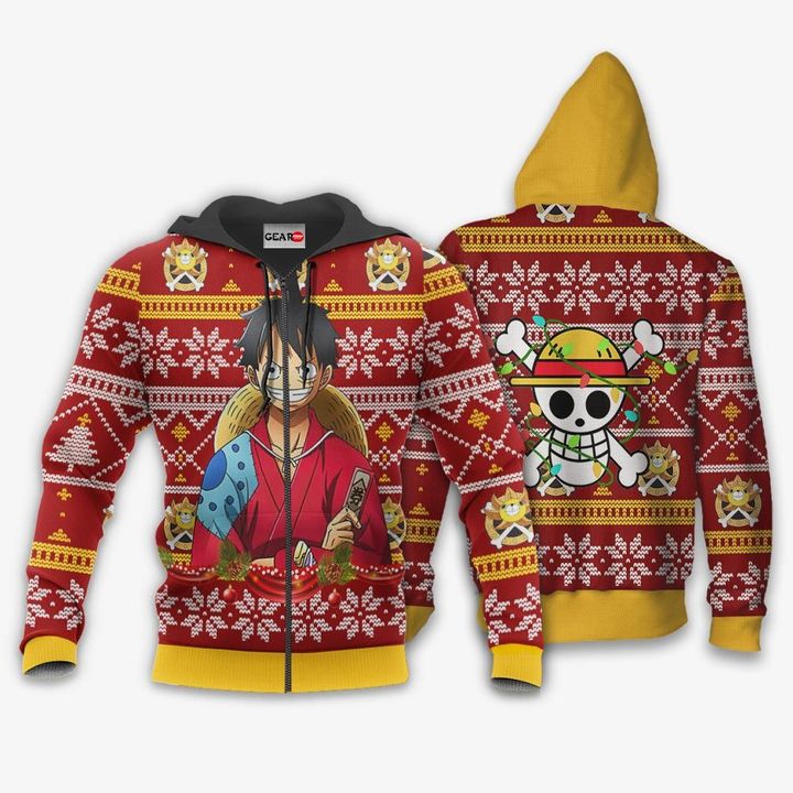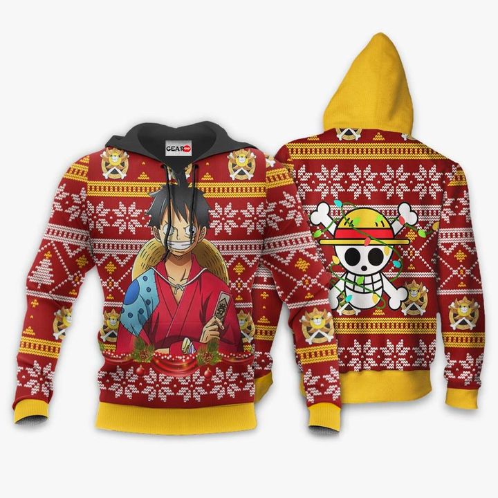 Luffy Ugly Christmas Sweater Pullover Hoodie Custom Wano One Piece Anime Xmas Gifts