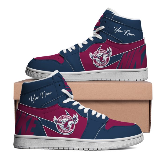 Manly Warringah Sea Eagles Custom Name NRL AJ1 Nike Sneakers High Top Shoes Collection