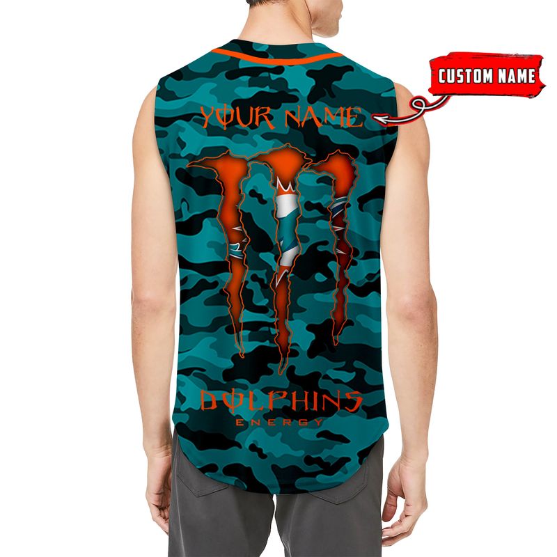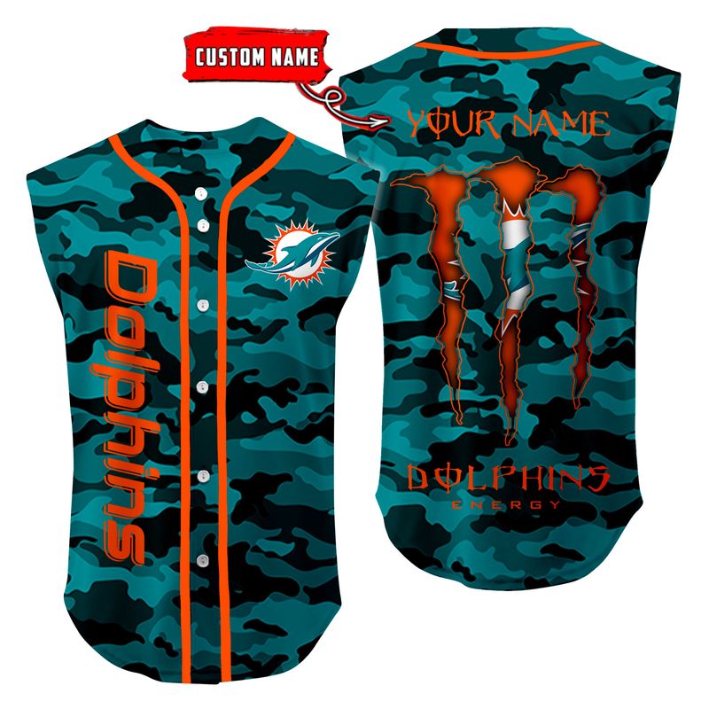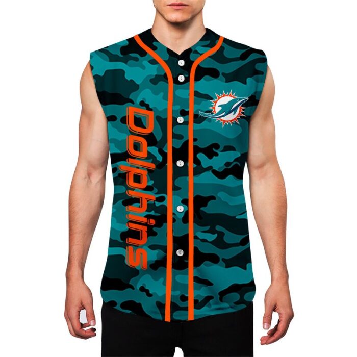 Miami Dolphins Camo Sleeveless Baseball Jersey Tank Top Custom Name BBTJ1084