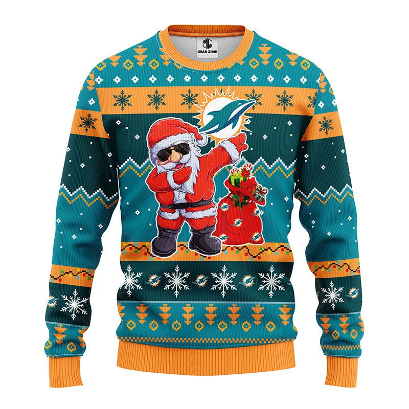 Miami Dolphins NFL Dabbing Santa Claus Ugly Christmas Sweater FUL1109