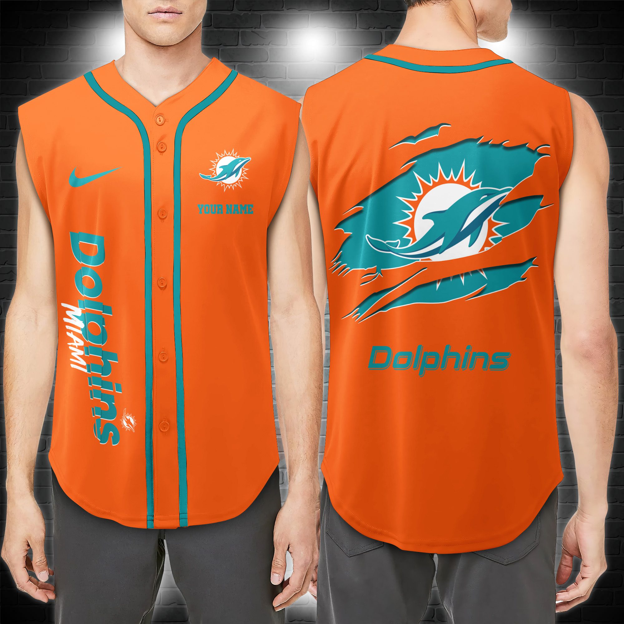 Miami Dolphins NFL Personalized Baseball Tank Tops Sleeveless Jersey
