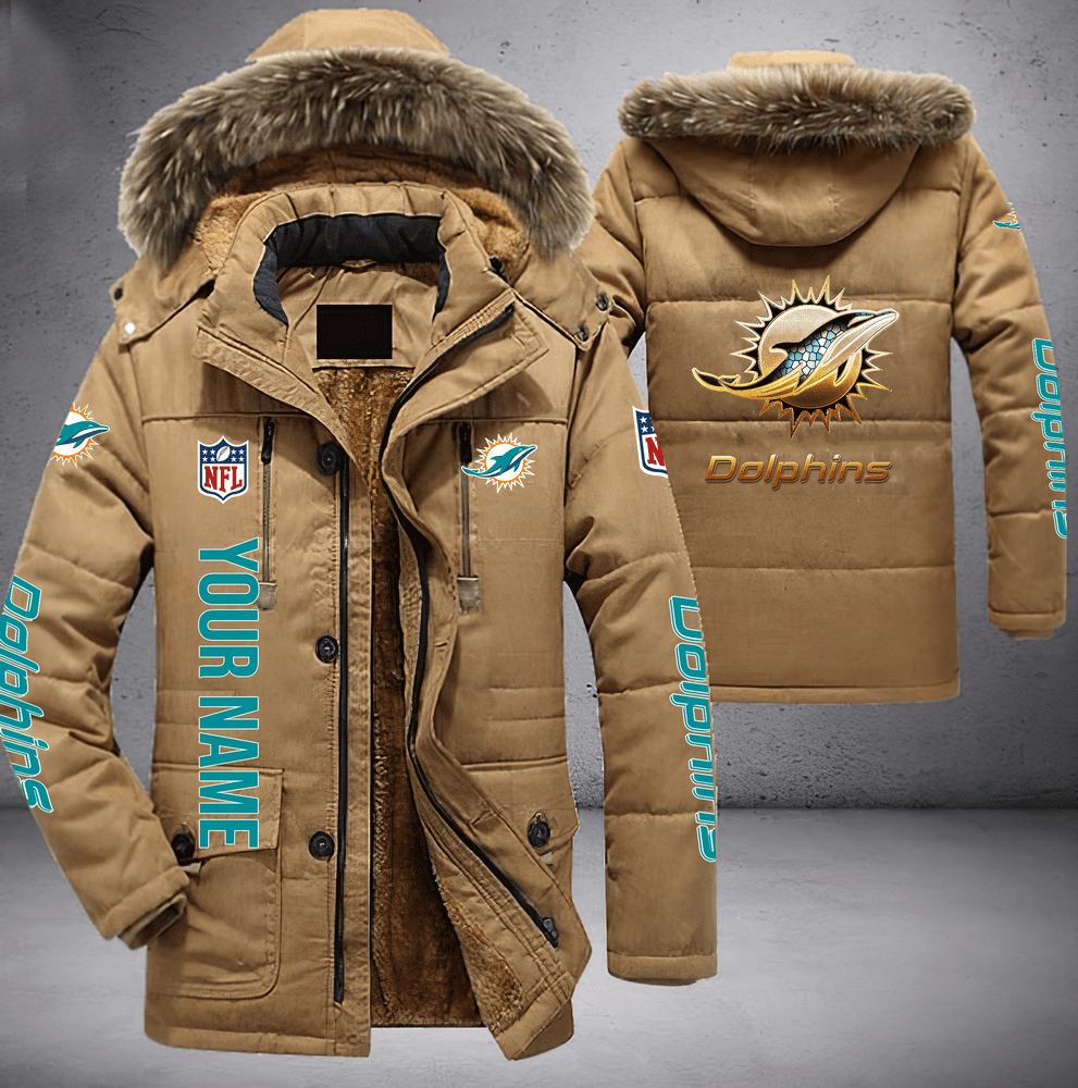 Miami Dolphins NFL Personalized Golden Logo Parka Jacket Fleece Coat Winter