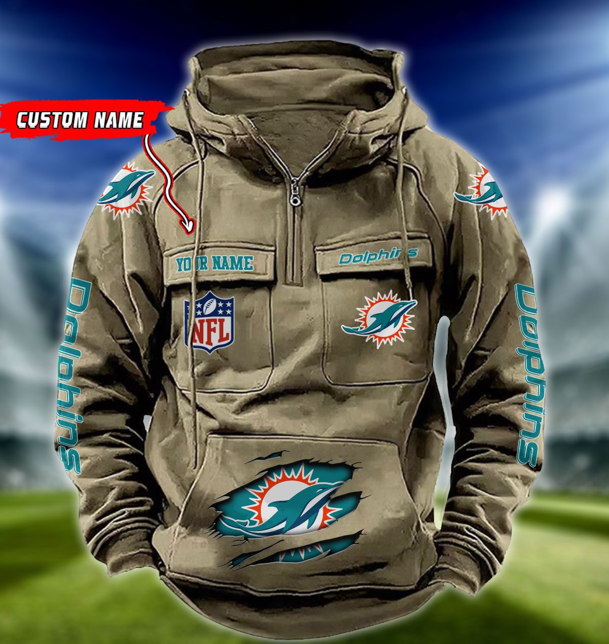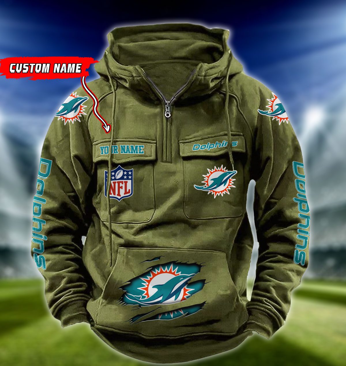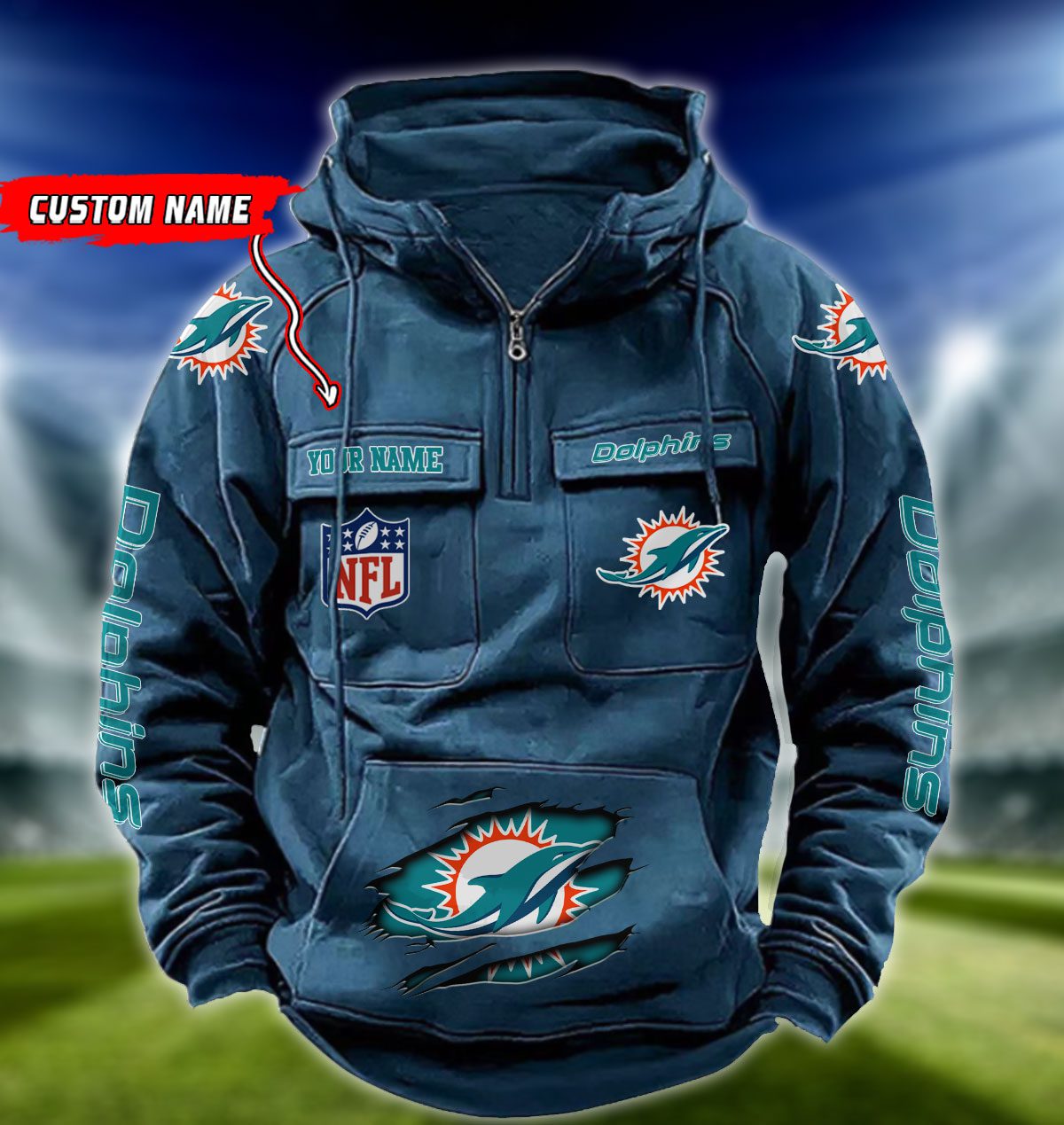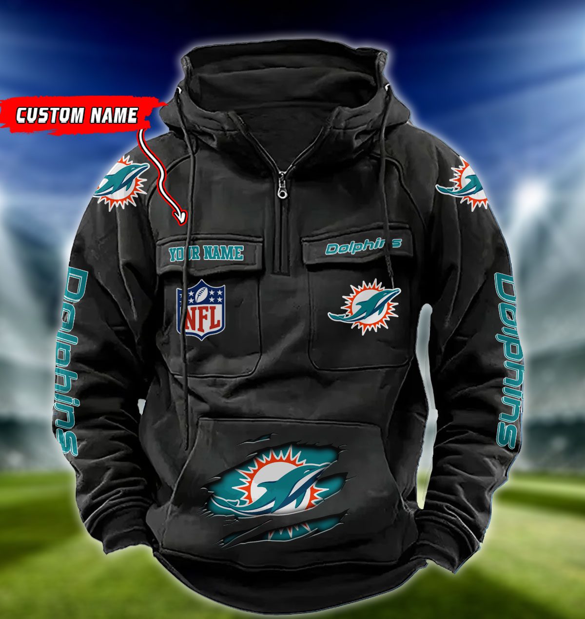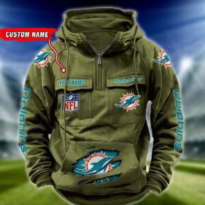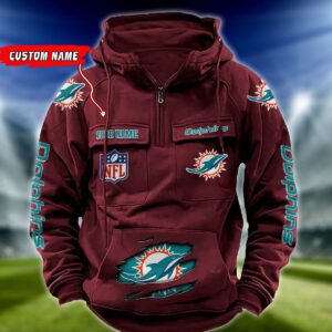 Miami Dolphins NFL Vintage Hoodie Quarter Zip Retro Hoodie Custom Any Name WRH1080