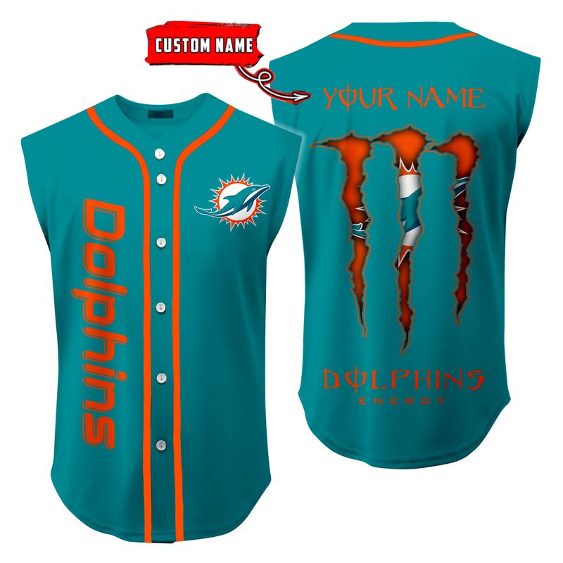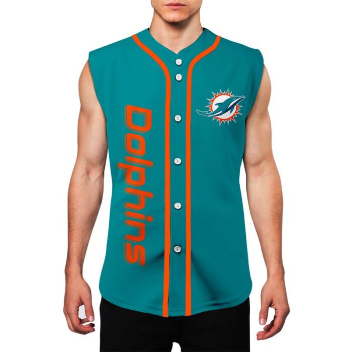 Miami Dolphins Sleeveless Baseball Jersey Tank Top Custom Name BBTJ1048