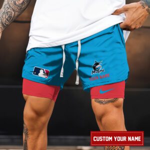 Miami Marlins MLB Personalized Double Layer Shorts WDS1145