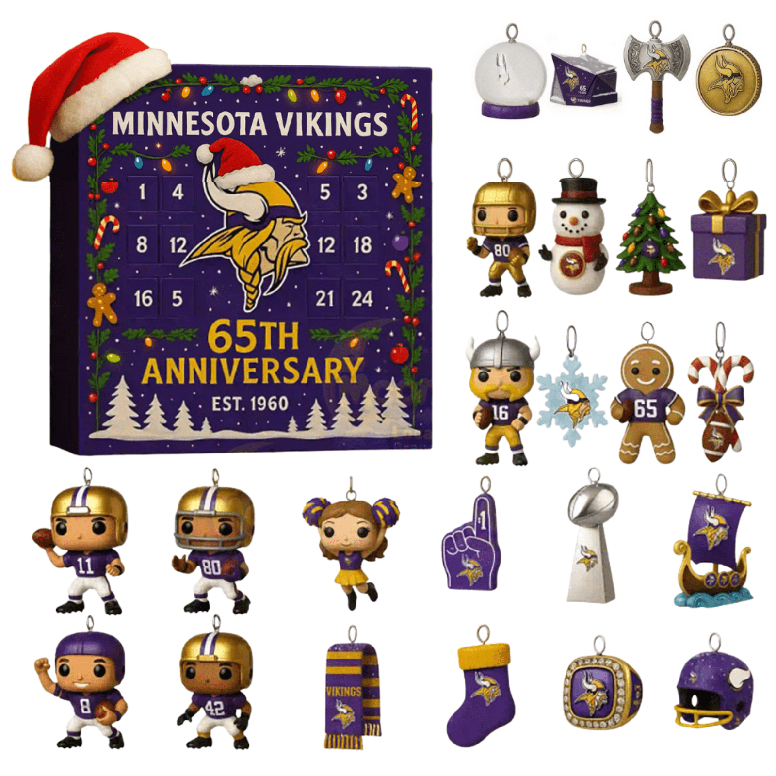 Minnesota Vikings Advent Calendar Acrylic Hanging Decor Box 2025 65Th Anniversary