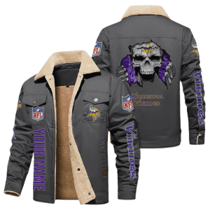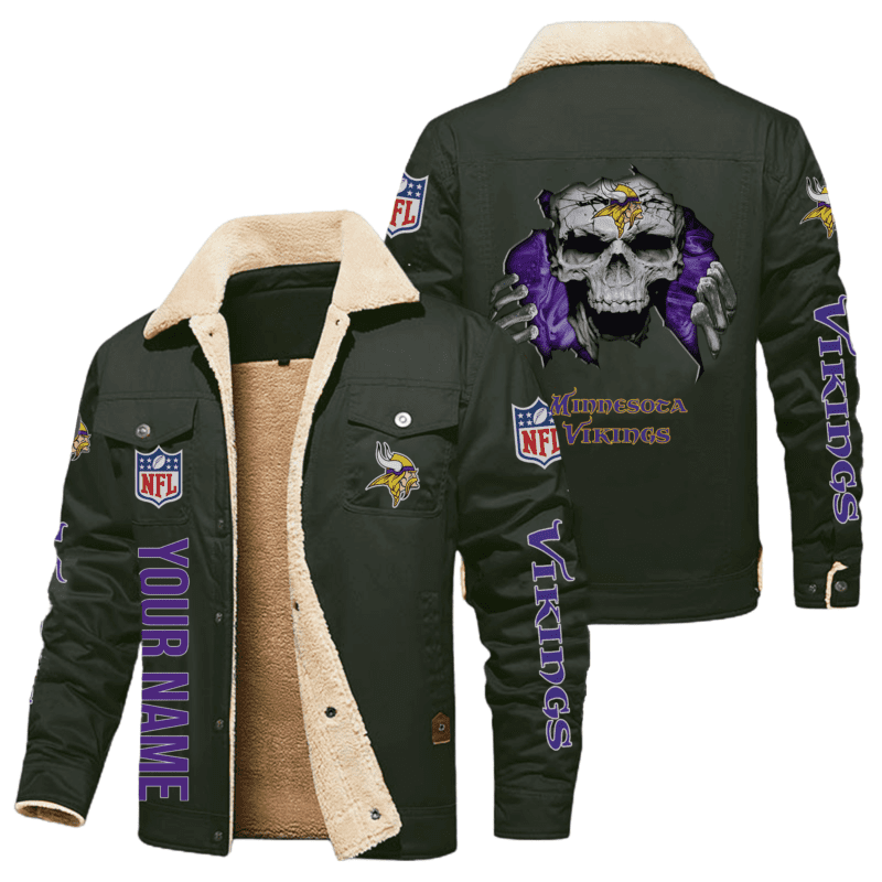 Minnesota Vikings NFL Skull Style Personalized Fleece Cargo Jacket Winter Jacket FCJ1467