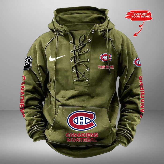 Montreal Canadiens NHL Swoosh Hooded Lace Up Retro Vintage Hoodie Custom Name