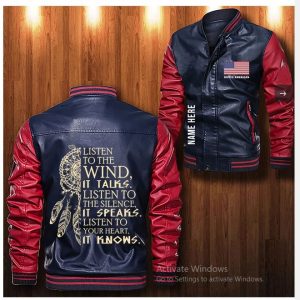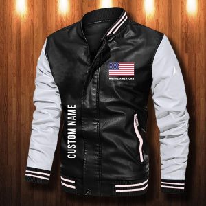 - This leather bomber jacket with high collar, full-zip front, and side seam pockets works as a finishing touch to a stylish cool-weather look