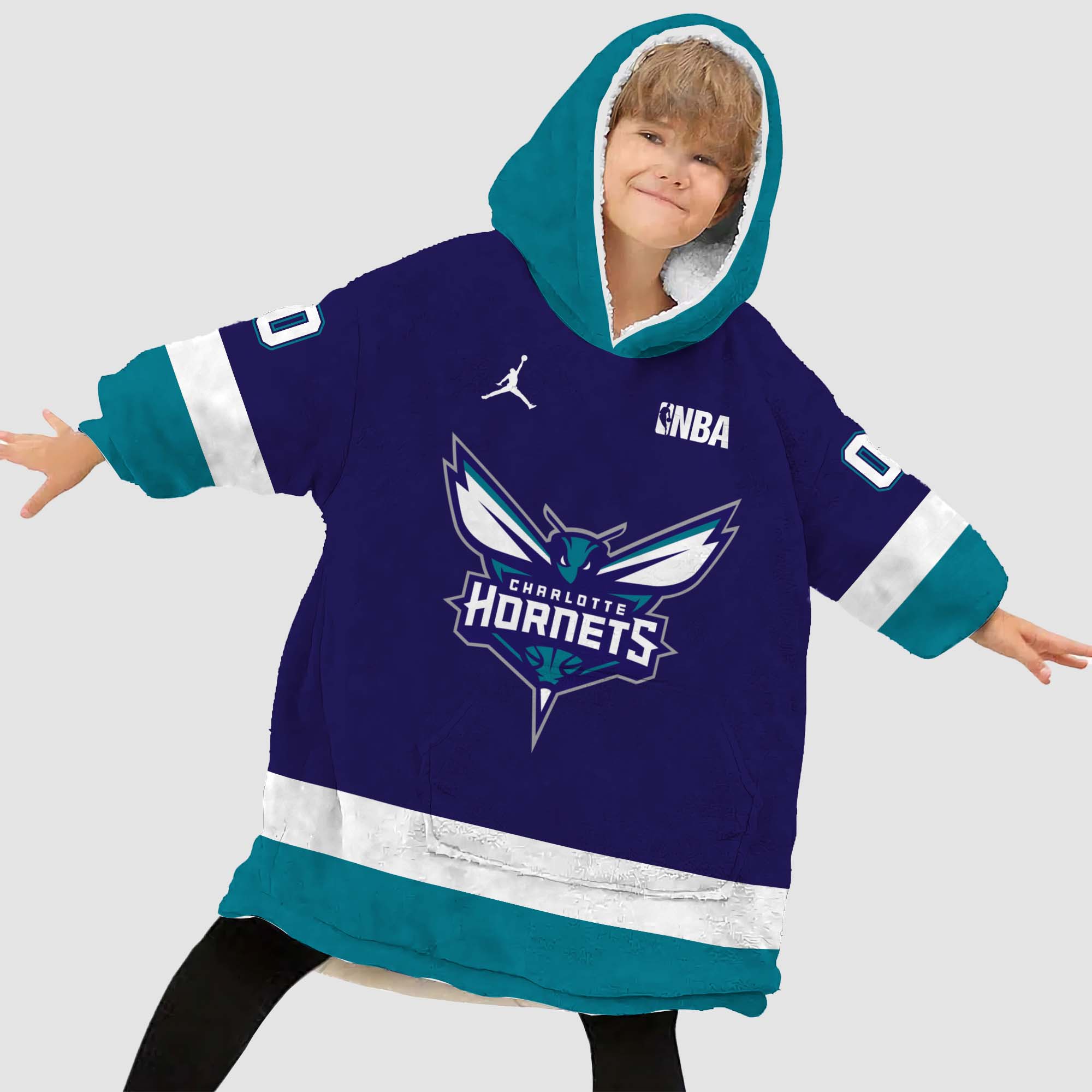 NBA Charlotte Hornets Personalized Oodie Blanket Hoodie Wearable Blanket Snuggie Hoodie