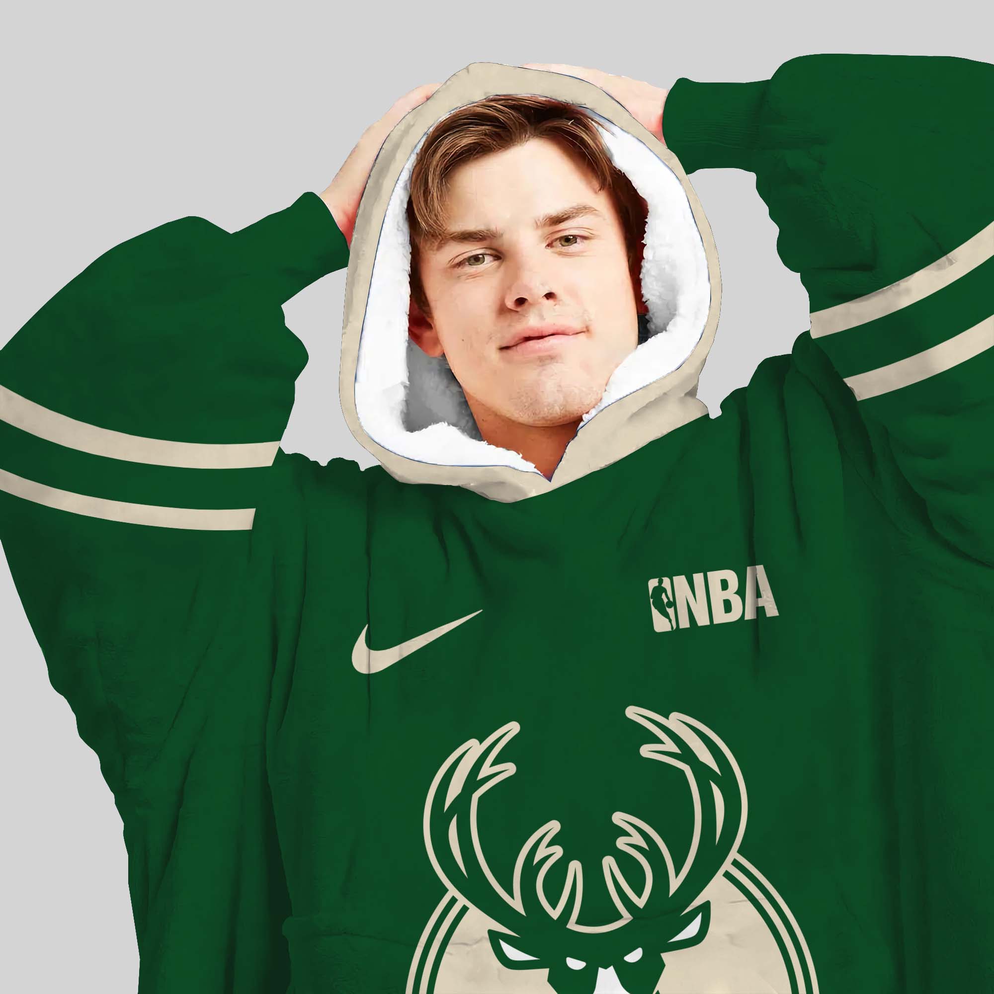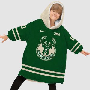 NBA Milwaukee Bucks Personalized Oodie Blanket Hoodie Wearable Blanket Snuggie Hoodie