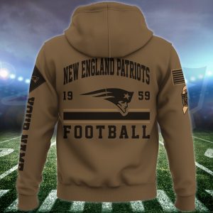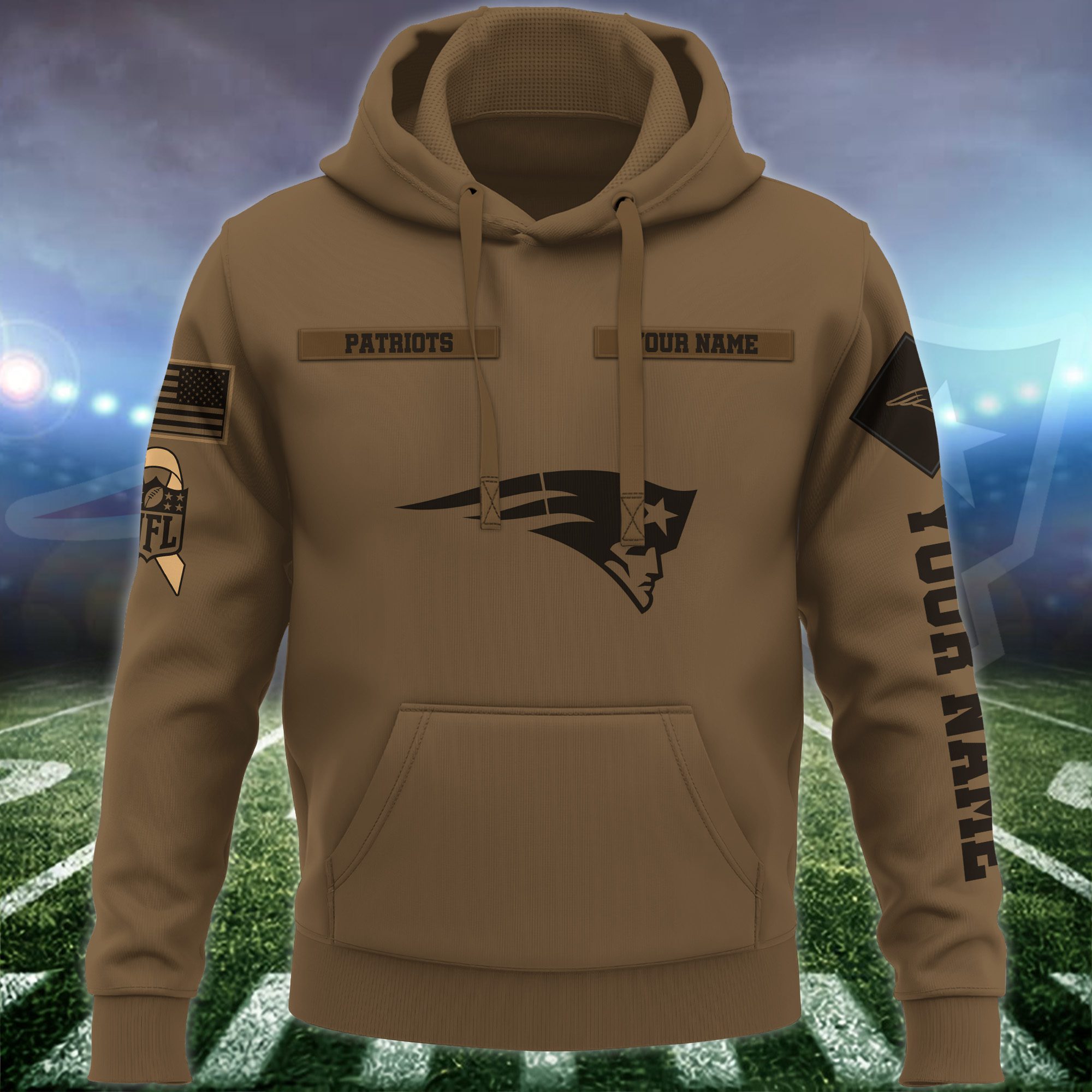 New England Patriots NFL Brown Salute To Service 2023 Veteran 3D Hoodie Custom Your Name HSL1150