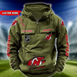 New Jersey Devils NHL Hockey Vintage Quarter Zip Hoodie Retro Hoodie Custom Name WRH1016