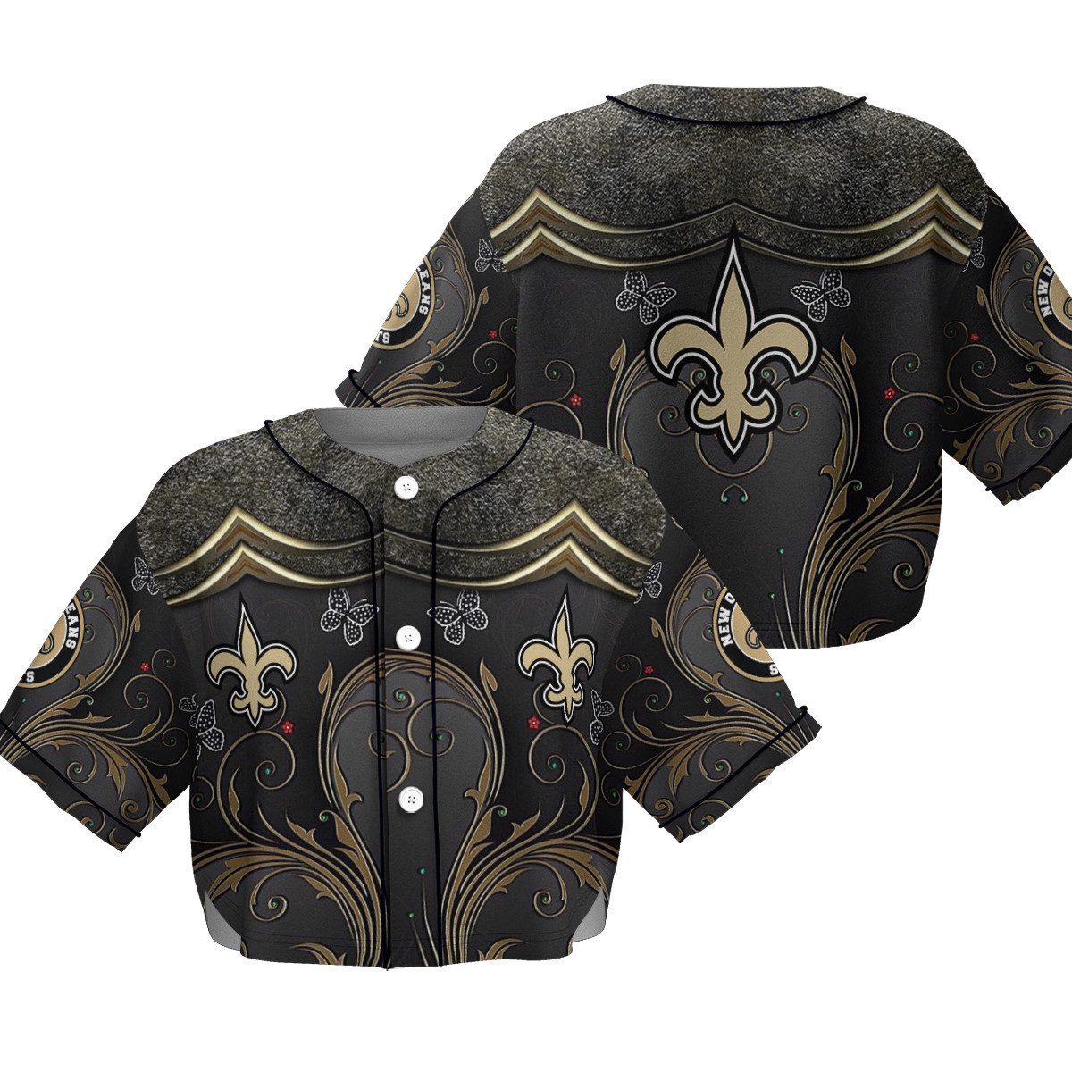 New Orleans Saints Crop Top Baseball Jersey CBJS1063