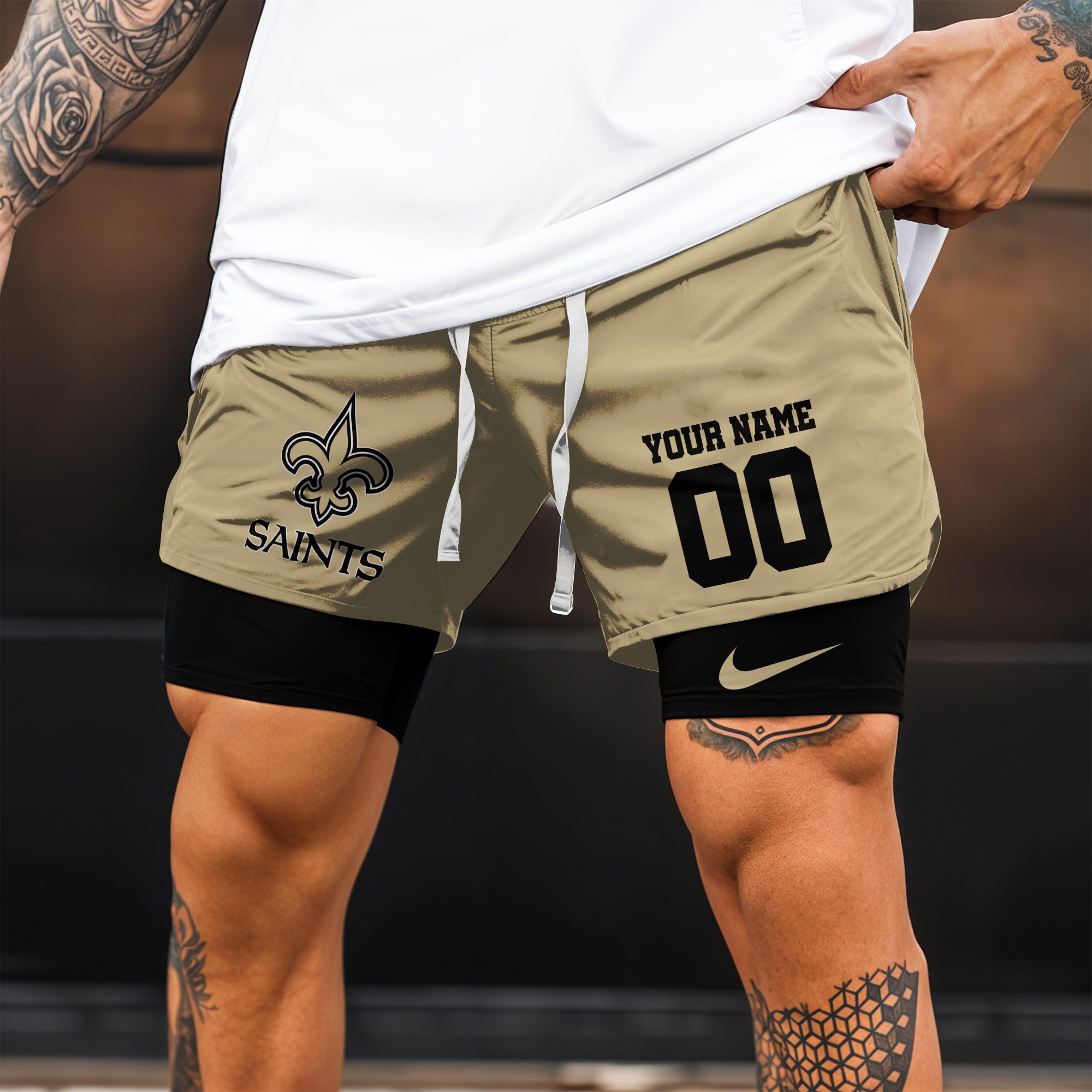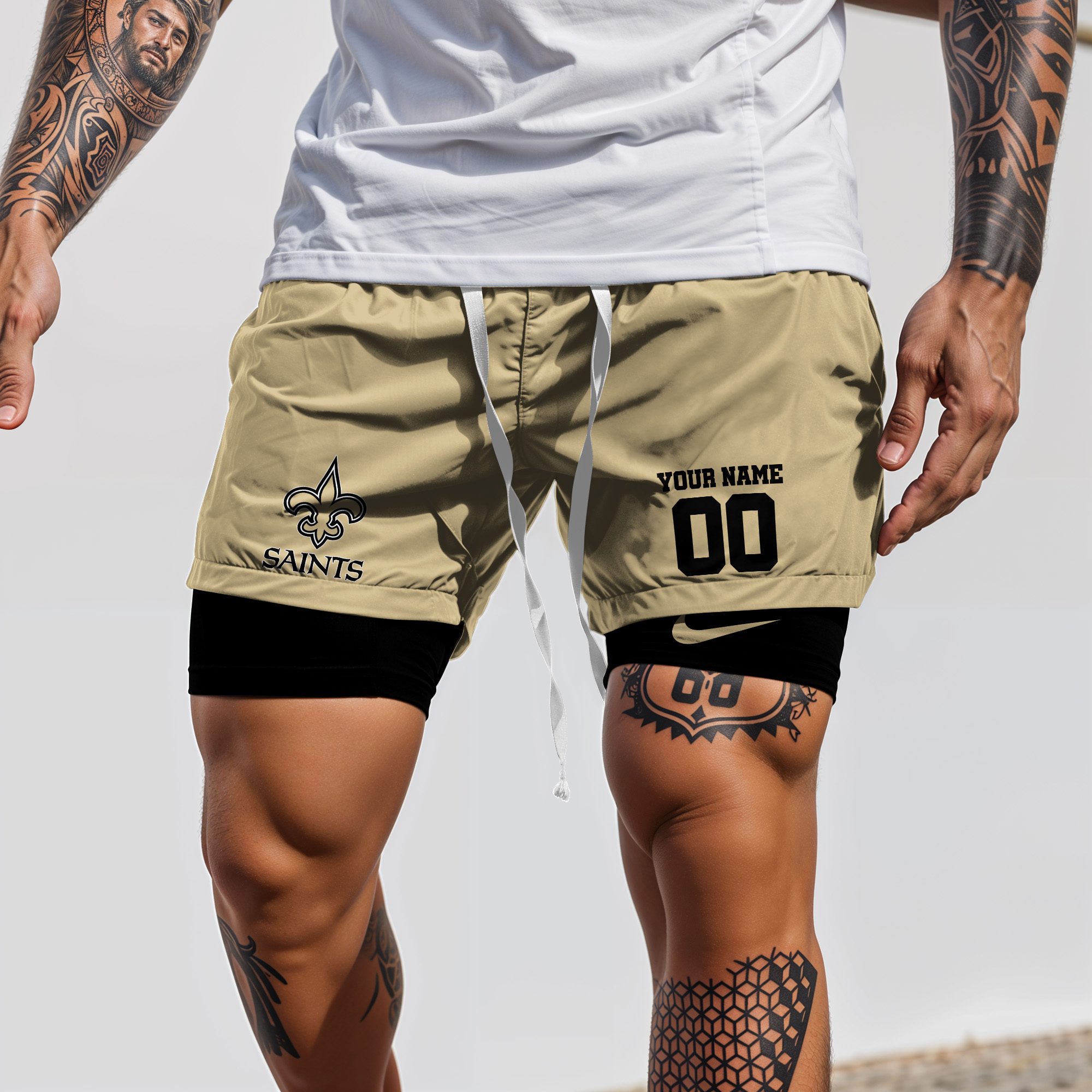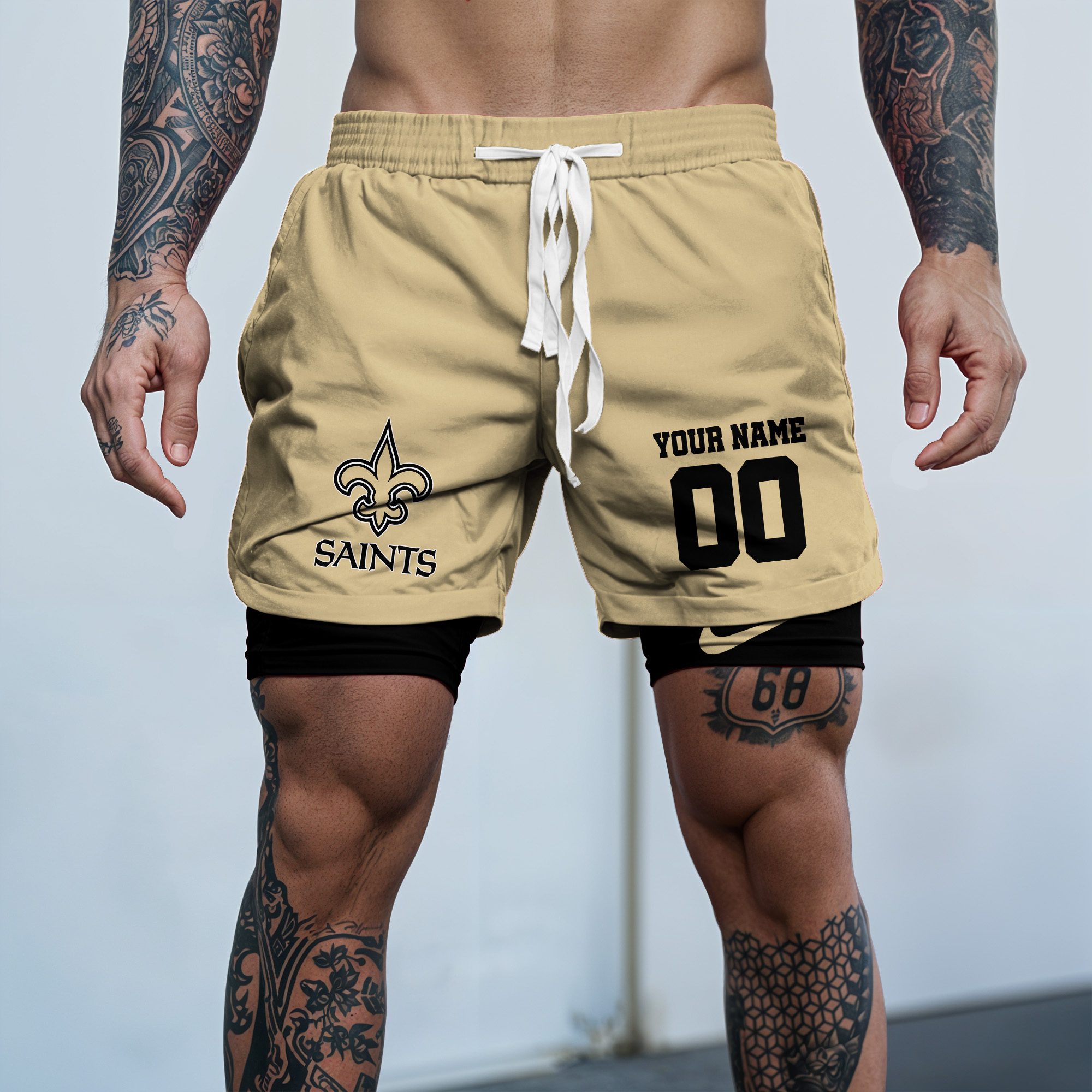 New Orleans Saints NFL Double Layer Shorts Custom Your Name And Number WDS1053