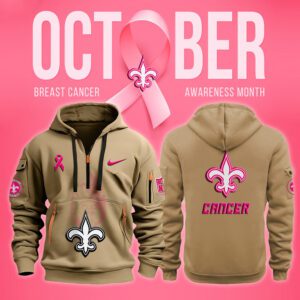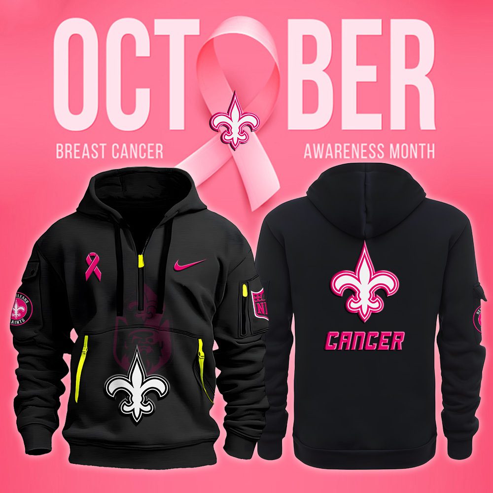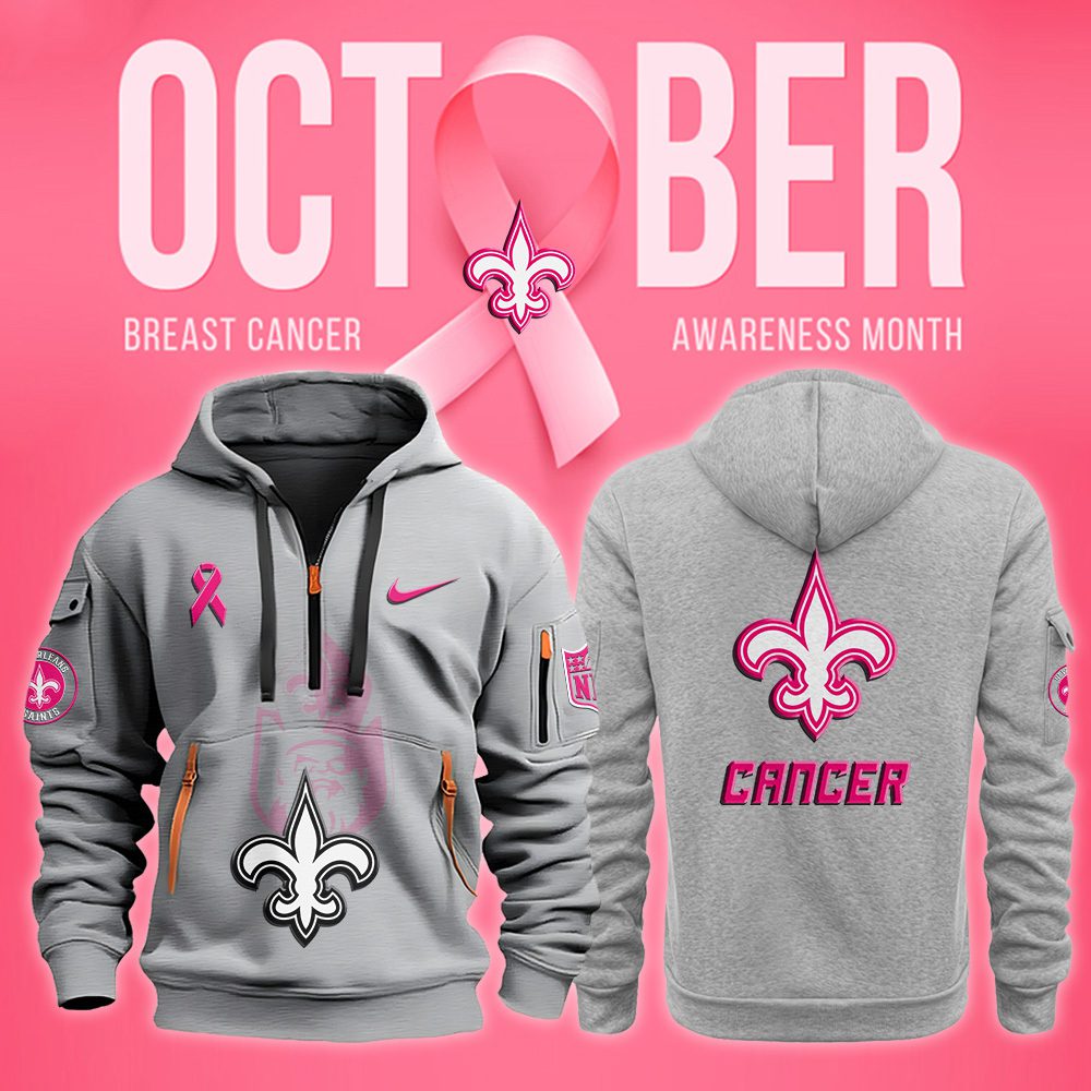 New Orleans Saints NFL October Breast Cancer Awareness Month Quarter Zip Hoodie
