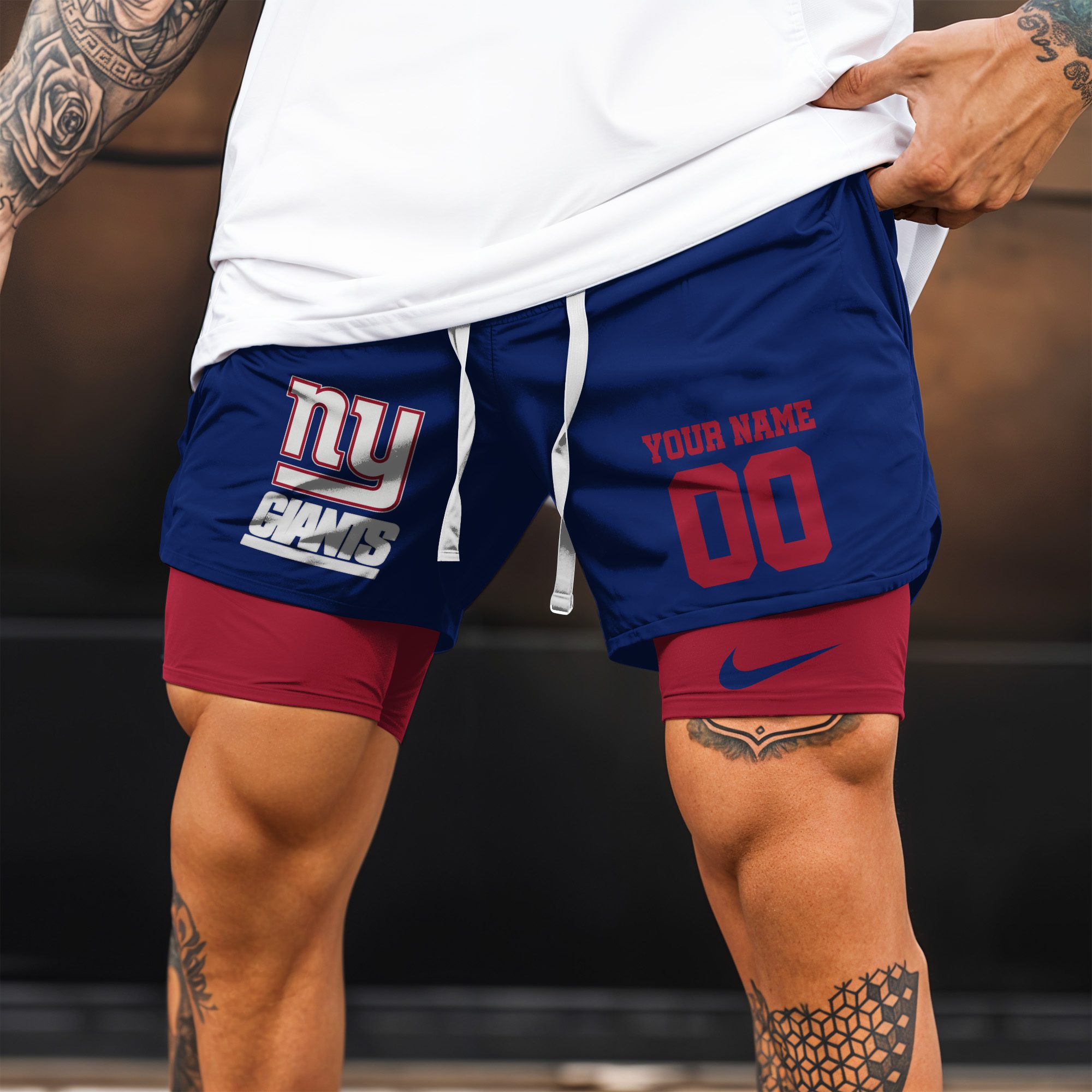 New York Giants NFL Double Layer Shorts Custom Your Name And Number WDS1055