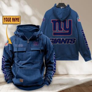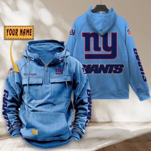 New York Giants NFL Personalized Multi Pocket Quarter Zip Vintage Hoodie WVH1058
