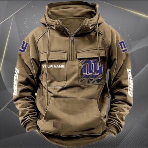 New York Giants Personalized NFL Vintage Hoodie Quarter Zip Retro Hoodie WRH1055