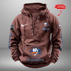 New York Islanders NHL Swoosh Hooded Lace Up Retro Vintage Hoodie Custom Name