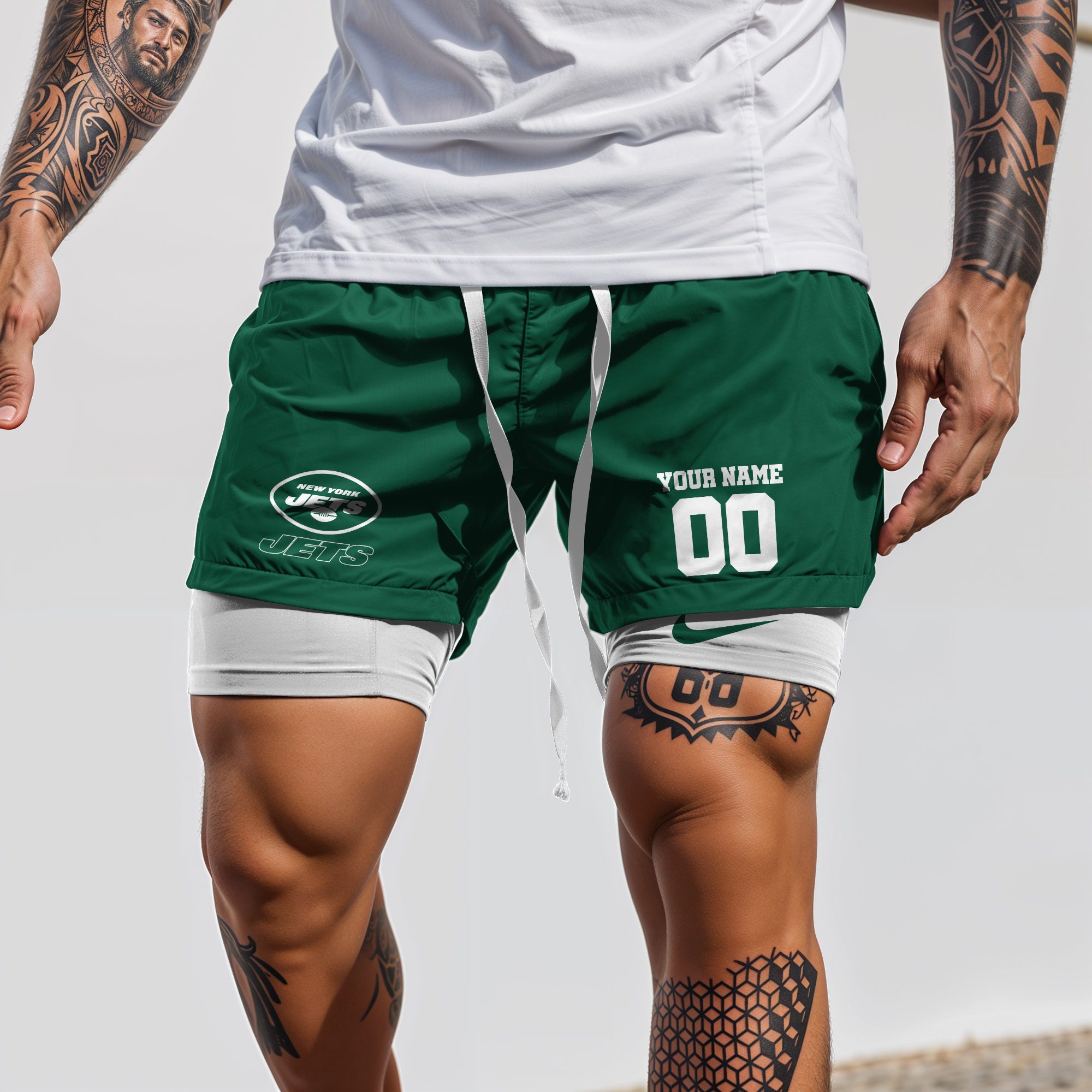 New York Jets NFL Double Layer Shorts Custom Your Name And Number WDS1056
