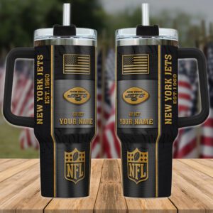 New York Jets NFL Personalized 40oz Stanley Tumbler Black Gold US Flag Tumbler