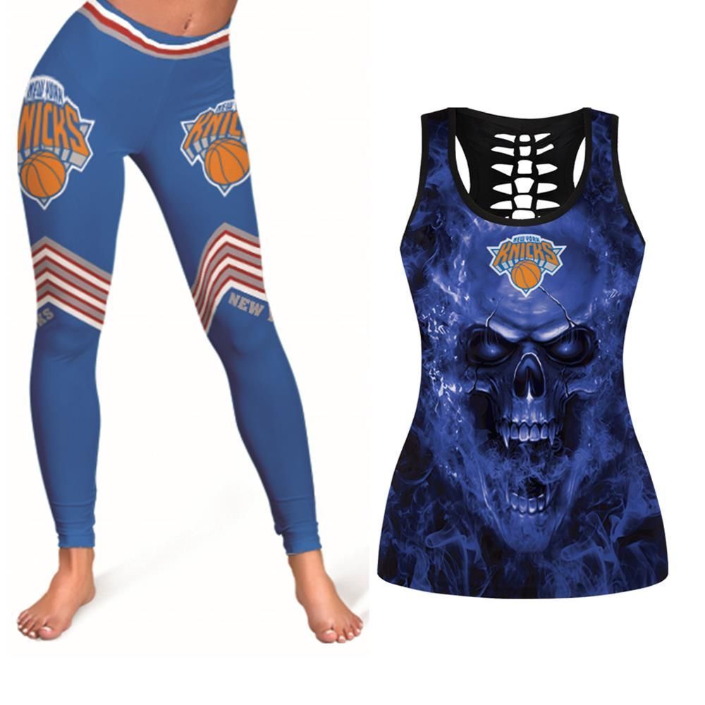 New York Knicks NBA Fan Skull Woman Legging Tanktop For New York Knicks Fans