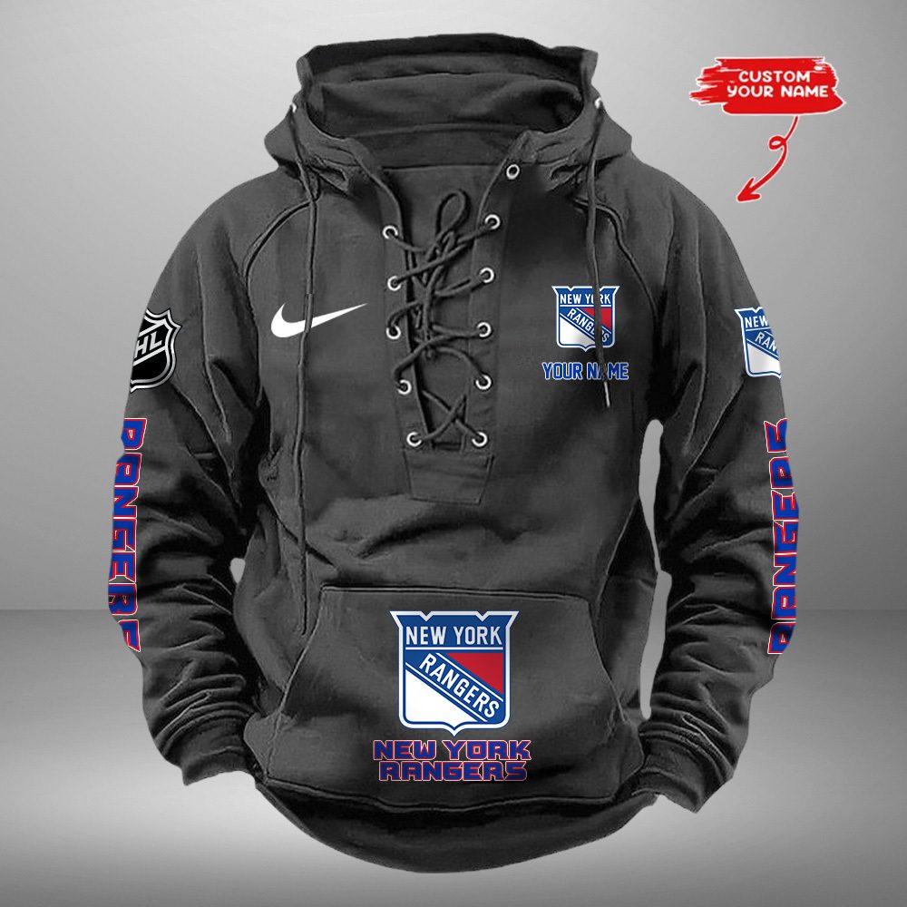 New York Rangers NHL Swoosh Hooded Lace Up Retro Vintage Hoodie Custom Name