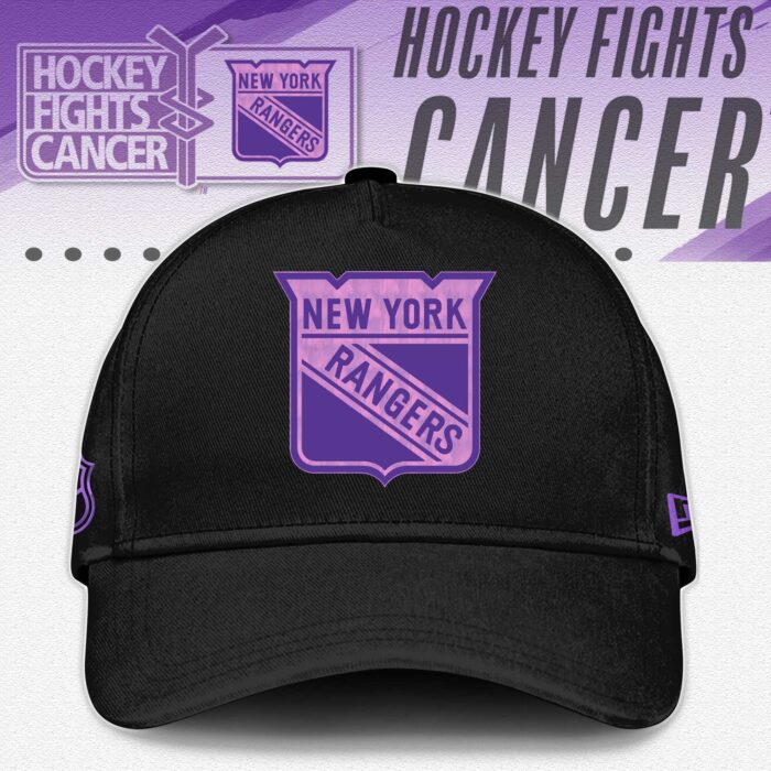 New York Rangers x Hockey Fights Cancer Black Unisex Hoodie Cap Joggers Set 2024/25 HCJ1345