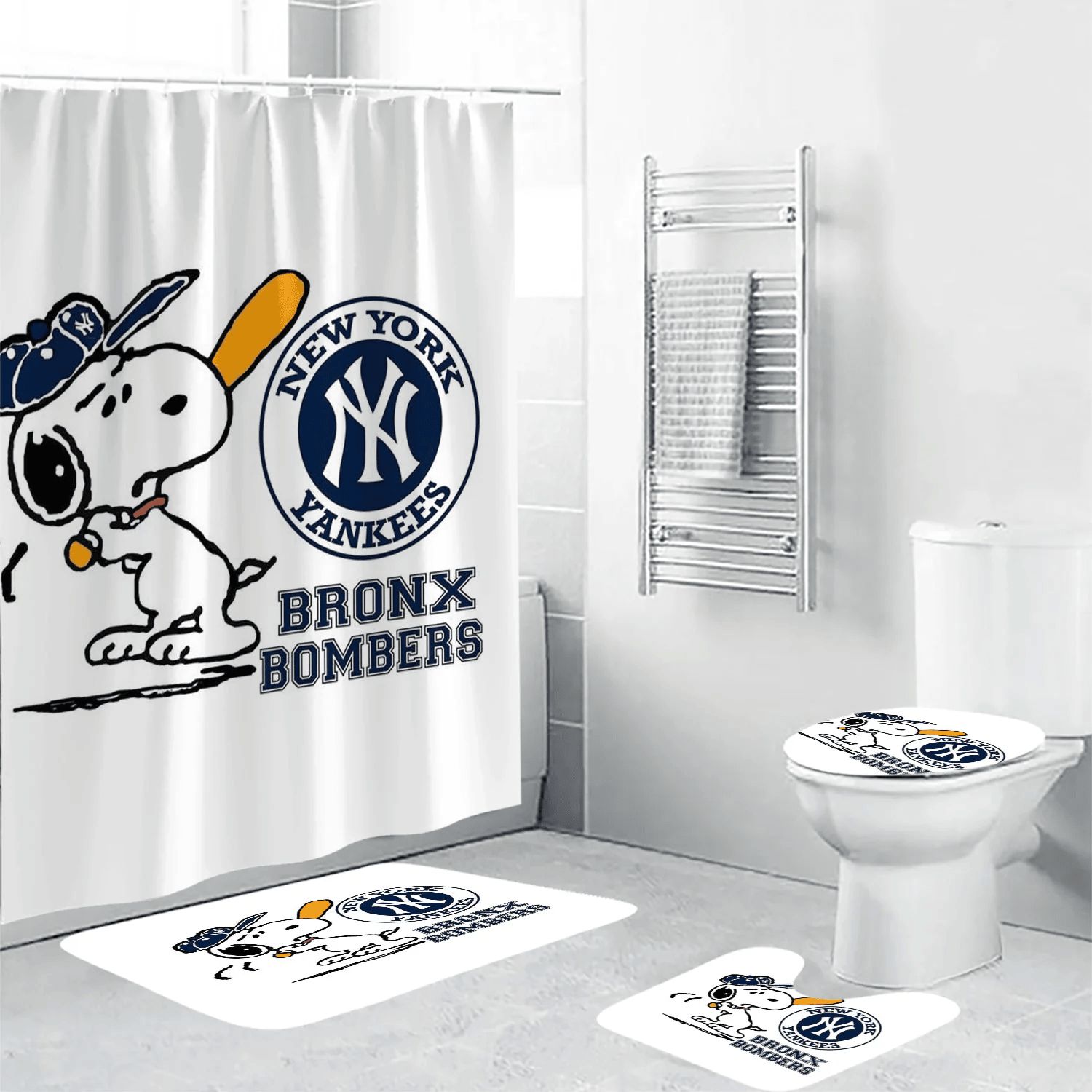 New York Yankees Bronx Bombers Snoopy 3D Bathroom Sets With Waterproof Shower Curtains And Bath Mat Sets BRS2707