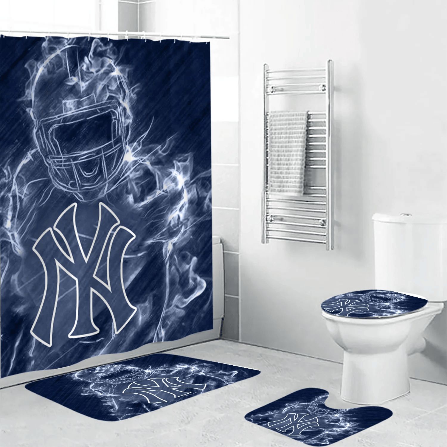 New York Yankees Legend Shower Curtain Non-Slip Toilet Lid Cover Bath Mat Bathroom Set BRS2044