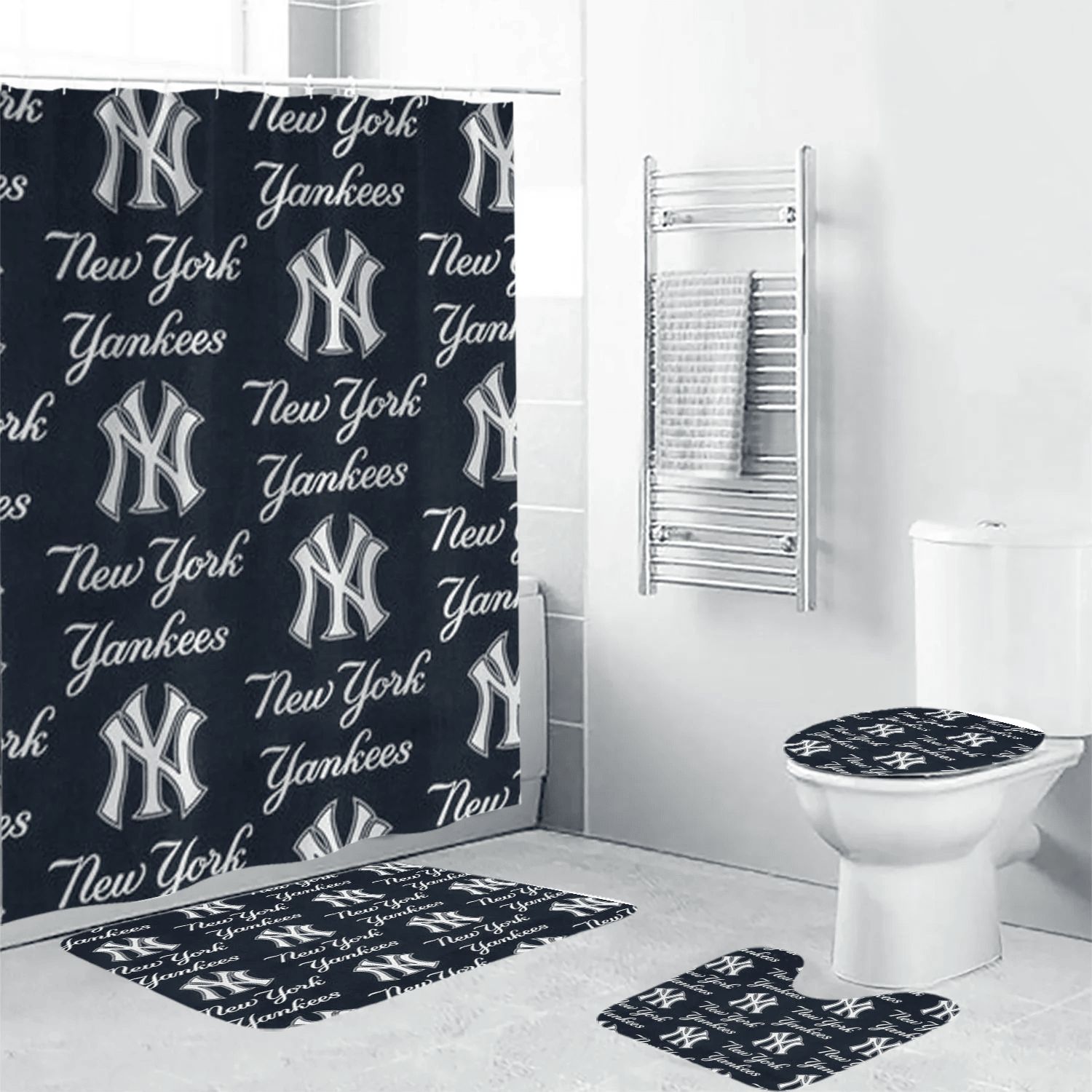New York Yankees Logo Pattern14 3D Bathroom Sets With Waterproof Shower Curtains And Bath Mat Sets BRS2702